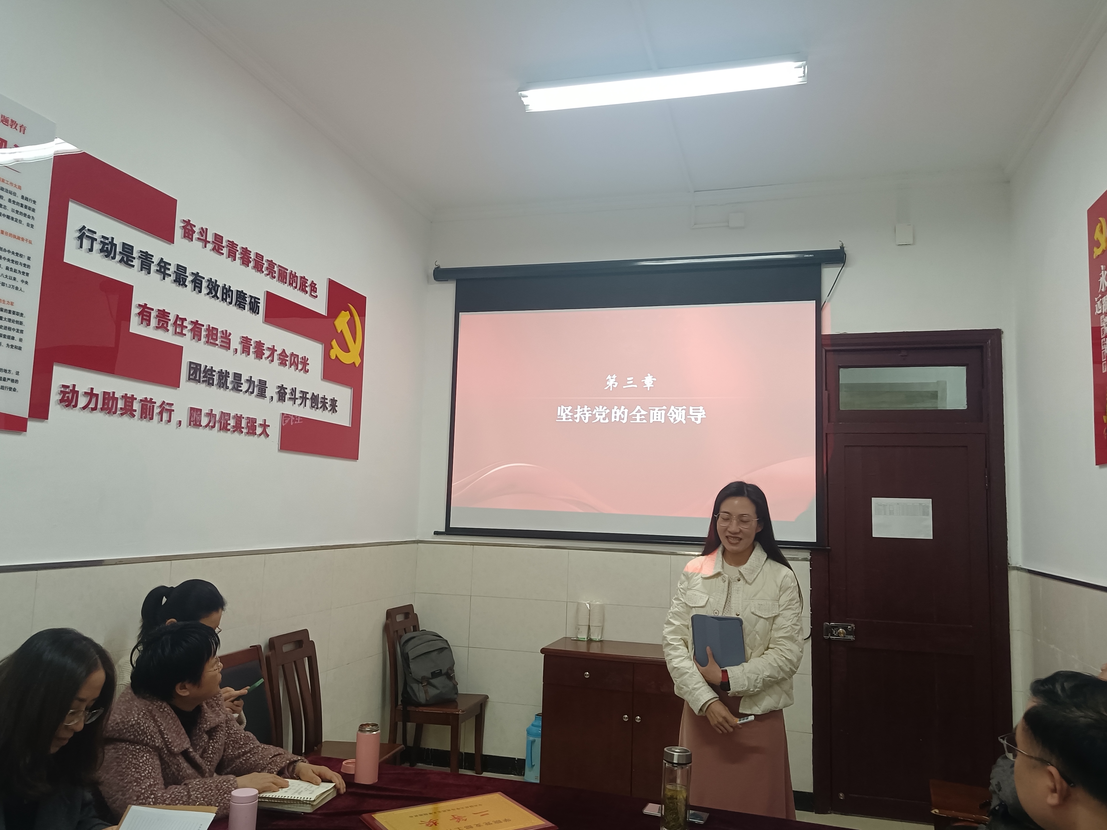 吴芮老师首先围绕第三章坚持党的全面领导第一节“中国共产党的领导是中国特色社会主义最本质的特征”进行教学展示,分别从“中国共产党的领导是由科学社会主义的理论逻辑决定的”“中国共产党的领导是由中国特色社会主义产生与发展的历史逻辑决定的”“中国共产党的领导是由中国特色社会主义迈向新征程的实践逻辑决定的”等方面展开论述。接下来,两教研室老师对吴老师教学展示在充分肯定基础上提出了建设性建议。其中,张爱武教授就如何将该部分讲得更加深入进行了教学展示,包括吴芮等在内在青年教师表示深受启发。最后,徐俊主任做了总结发言。发言中徐俊主任关心青年教师成长,希望青年教师能够利用各种机会,更进一步提高自身教学水平。