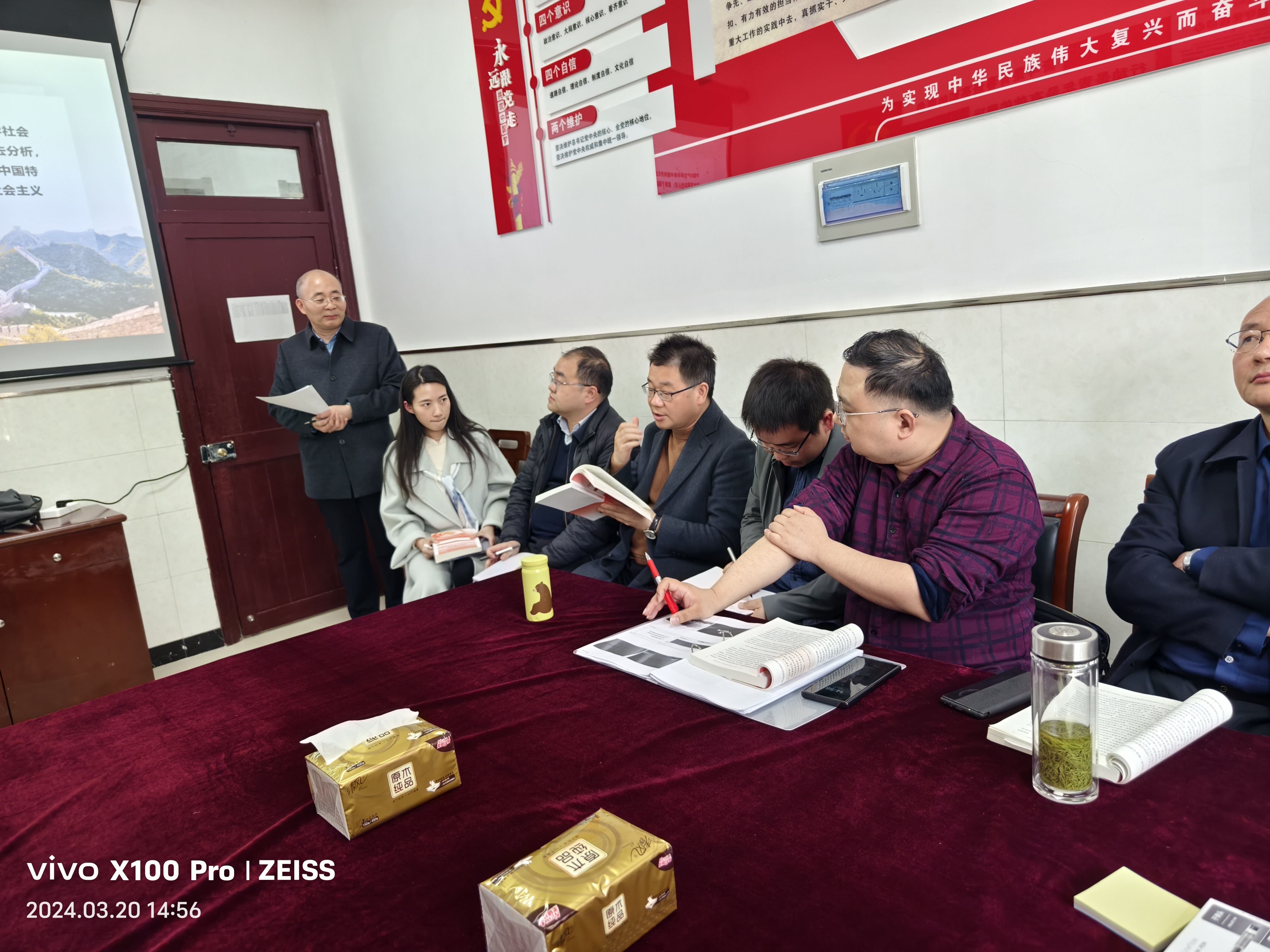 2024年3月20日下午,在学院办公楼115办公室,习近平新时代中国特色社会主义思想概论教研部、毛泽东思想和中国特色社会主义理论体系概论教研部,以及扬州中瑞酒店职业学院马克思主义理论研究所联合举行了开学第一次集体备课会。扬州大学马克思主义学院胡立法院长和新华社江苏分社柯高阳记者也出席了此次会议。会议由徐俊主任和陈晓梅书记共同主持,内容涵盖三个主要环节。