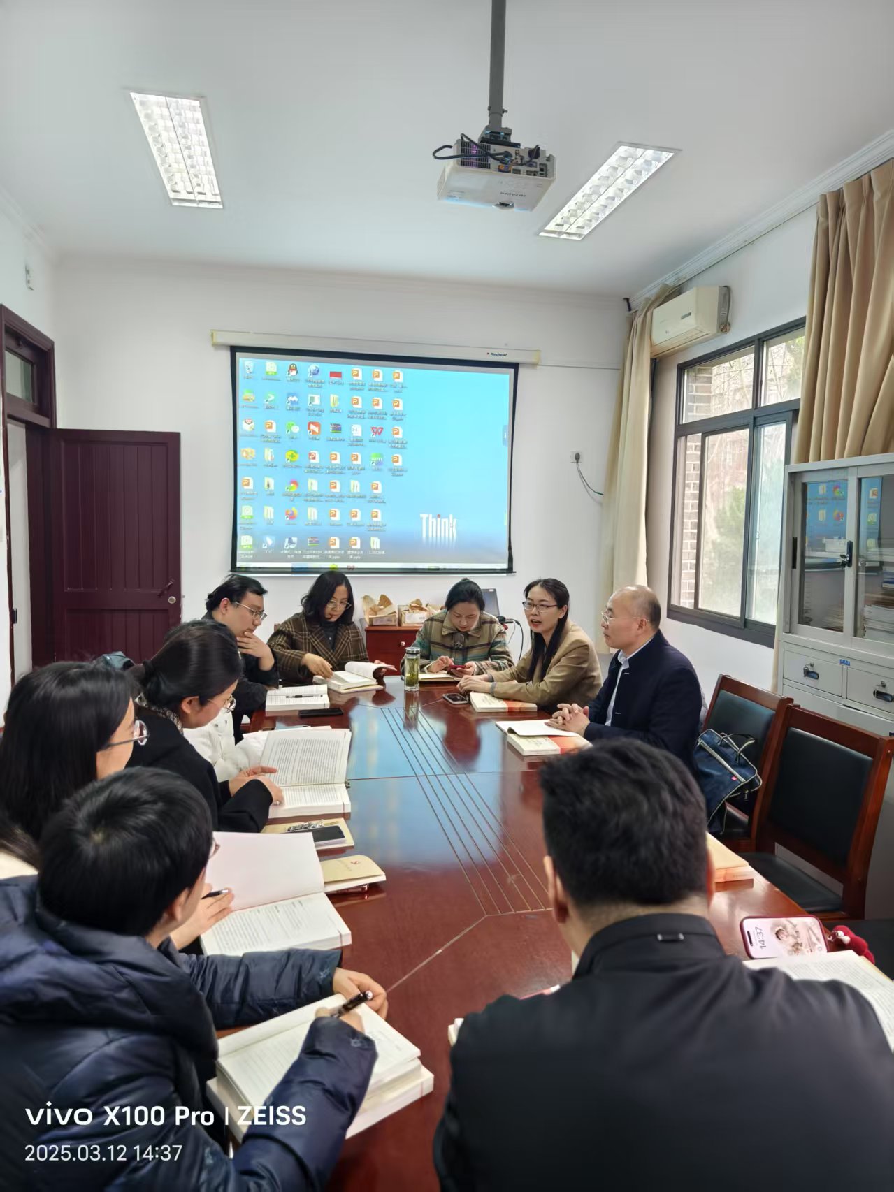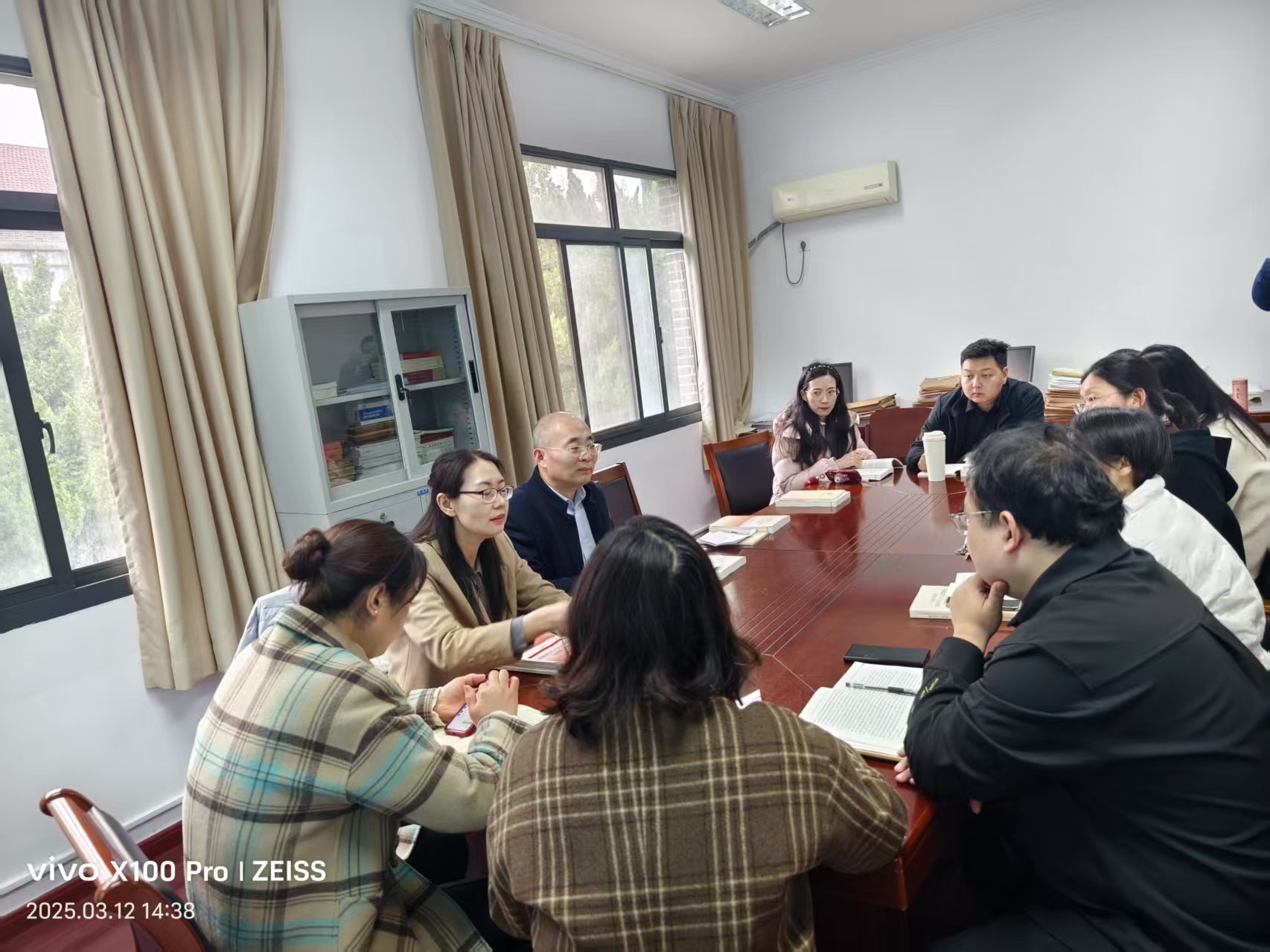 2025年3月12日下午,习近平新时代中国特色社会主义思想概论教研部和毛泽东思想和中国特色社会主义理论体系概论教研部在学院办公楼216办公室举行了集体备课活动。教研部全体教师参加了此次活动。徐俊主任主持会议,扬州大学马克思主义学院黄蓉副书记列席。