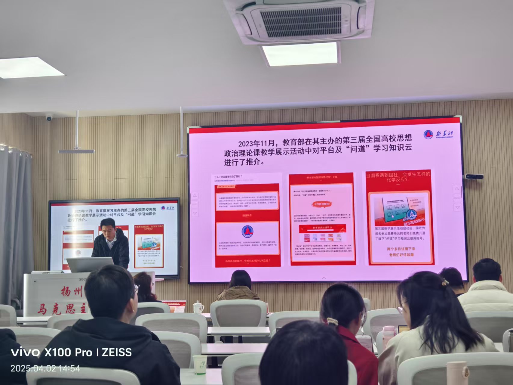 活动第二个环节,新华社江苏分社的同志以《习近平新时代中国特色社会主义思想概论》为例,向大家介绍了新华思政融媒平台、“问道”知识云、新华全媒服务平台和新华妙笔写作平台的使用方法。
