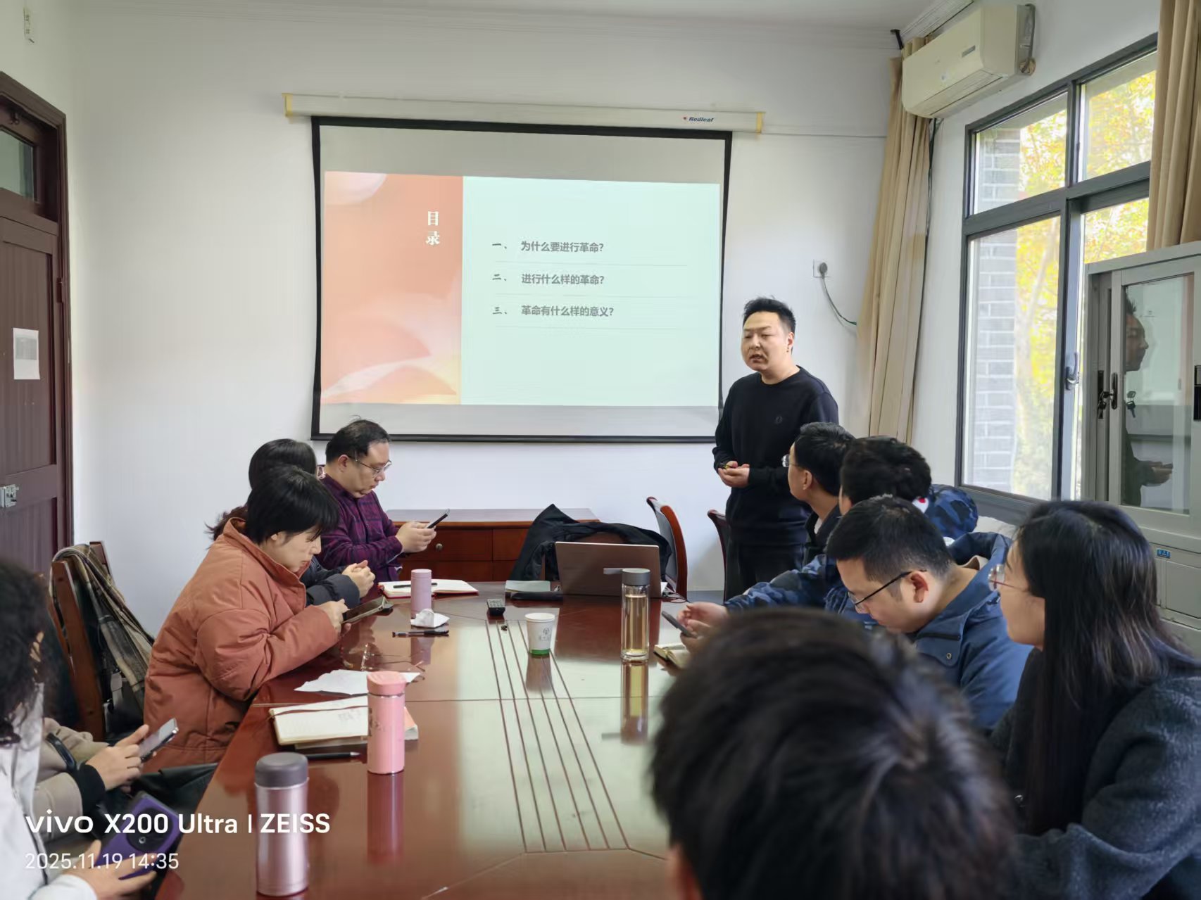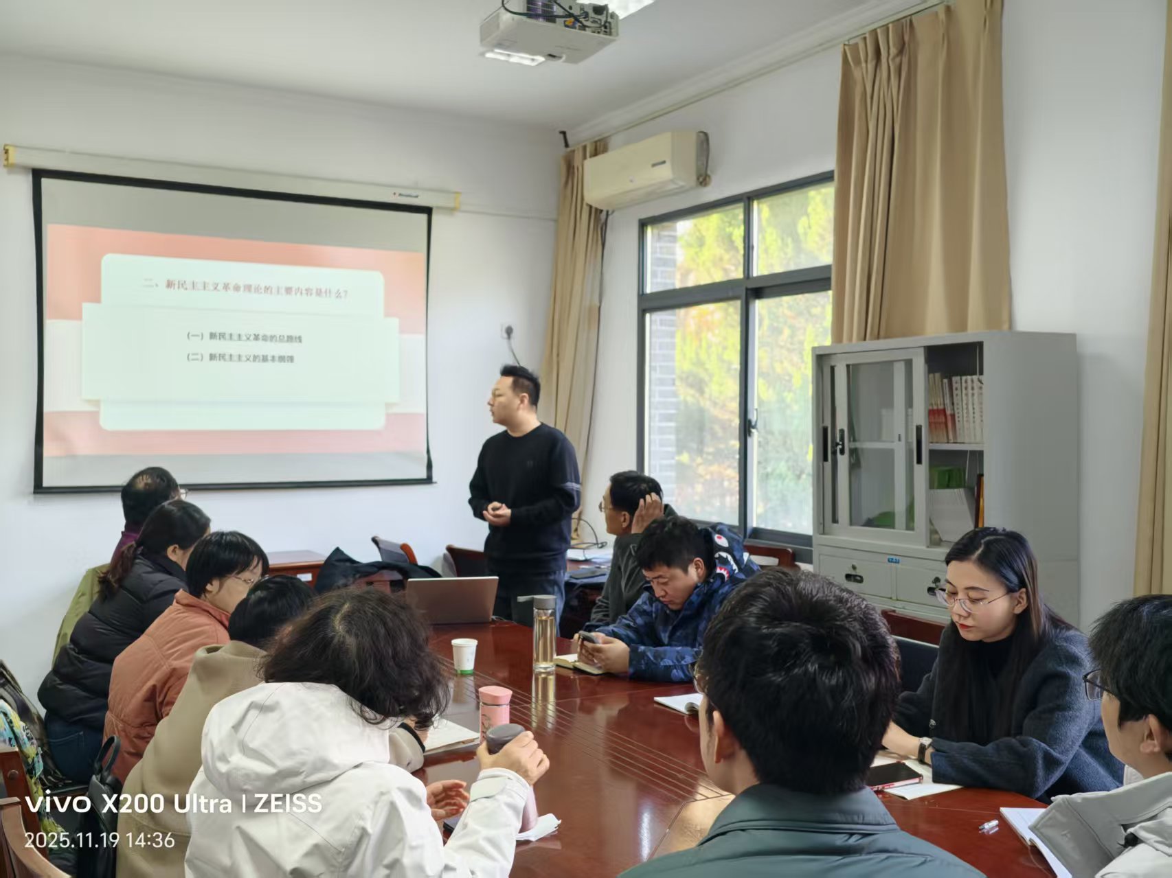 首先,崔东方老师做了《新民主主义革命的总路线》的专题示范课讲授。崔老师从革命的任务和对象、革命的动力、革命的领导力量和革命的性质和前途四个方面进行了详细阐述。课件精美,叙述详实。其次,各位老师分别从教学比赛或上课的角度提出了相关改进的建议。再次,陈诚主任向大家分享了参加省教学比赛的相关经验和感悟,并对崔老师的示范课进行了详细点评。最后,陈晓梅书记向大家通报了本周六党日活动的相关安排。