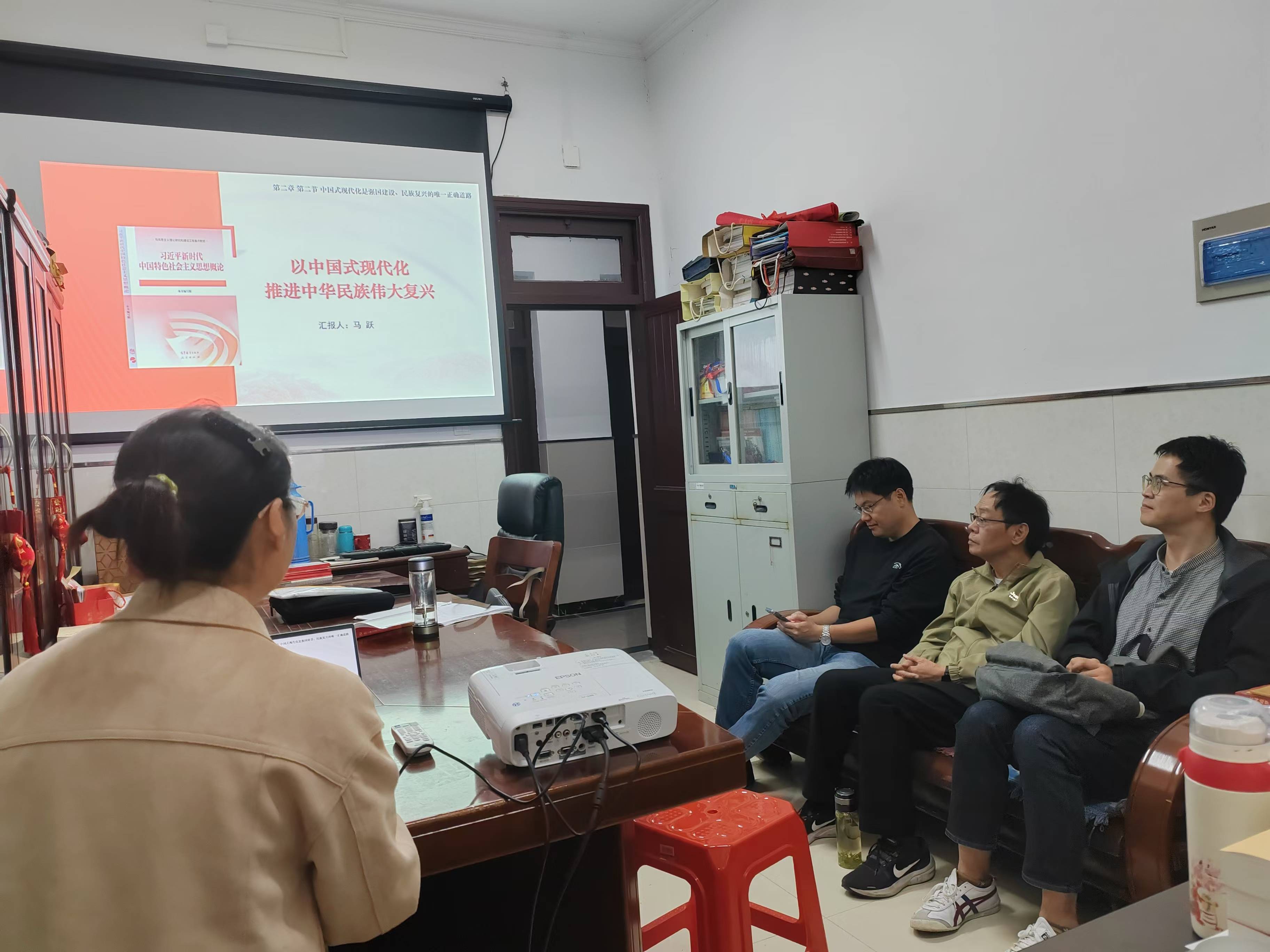 会上,马跃老师根据学校下发的教师教学创新大赛通知要求,以“以中国式现代化推动中华民族伟大复兴”为主题,从教材分析、学情分析、教学方法、教学过程、教学特色与反思等方面,进行了简要说课和示范课讲解。与会教师们在给予较高评价的同时,提出了自己的建议。