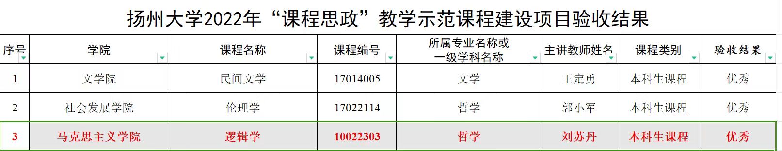 原理教研部刘苏丹老师主持的扬州大学“课程思政”教学示范课程建设项目顺利通过结项验收,并且评级为“优秀”!