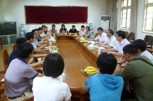 6月27日,浙江师范大学法政学院(社科部)干部教师20余人在院长张根福、党委书记章剑锋、副书记俞明祥率领下,来我院就马克思主义学院的机构设置、学科建设、两课教学、研究生思想政治理论课开设、师资队伍建设、思政课社会实践情况等内容进行了广泛的交流。院党委书记徐家庆、副书记副院长吴荣军、副院长曹峻等接待了客人,并分别就相关问题与客人进行了研讨。