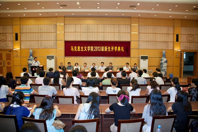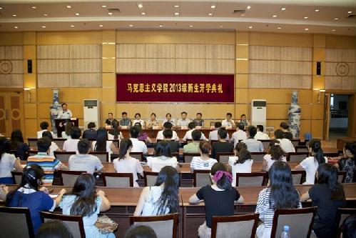 9月3日,马克思主义学院在荷花池校区教学主楼二楼多功能厅隆重举行了2013级新生开学典礼。全体院领导,院综合办公室、院团委(学工办)、学位点、政教专业负责人,新生班主任,院学生组织负责人,以及全体2013级新生出席了典礼。开学典礼由党委副书记左红梅主持。