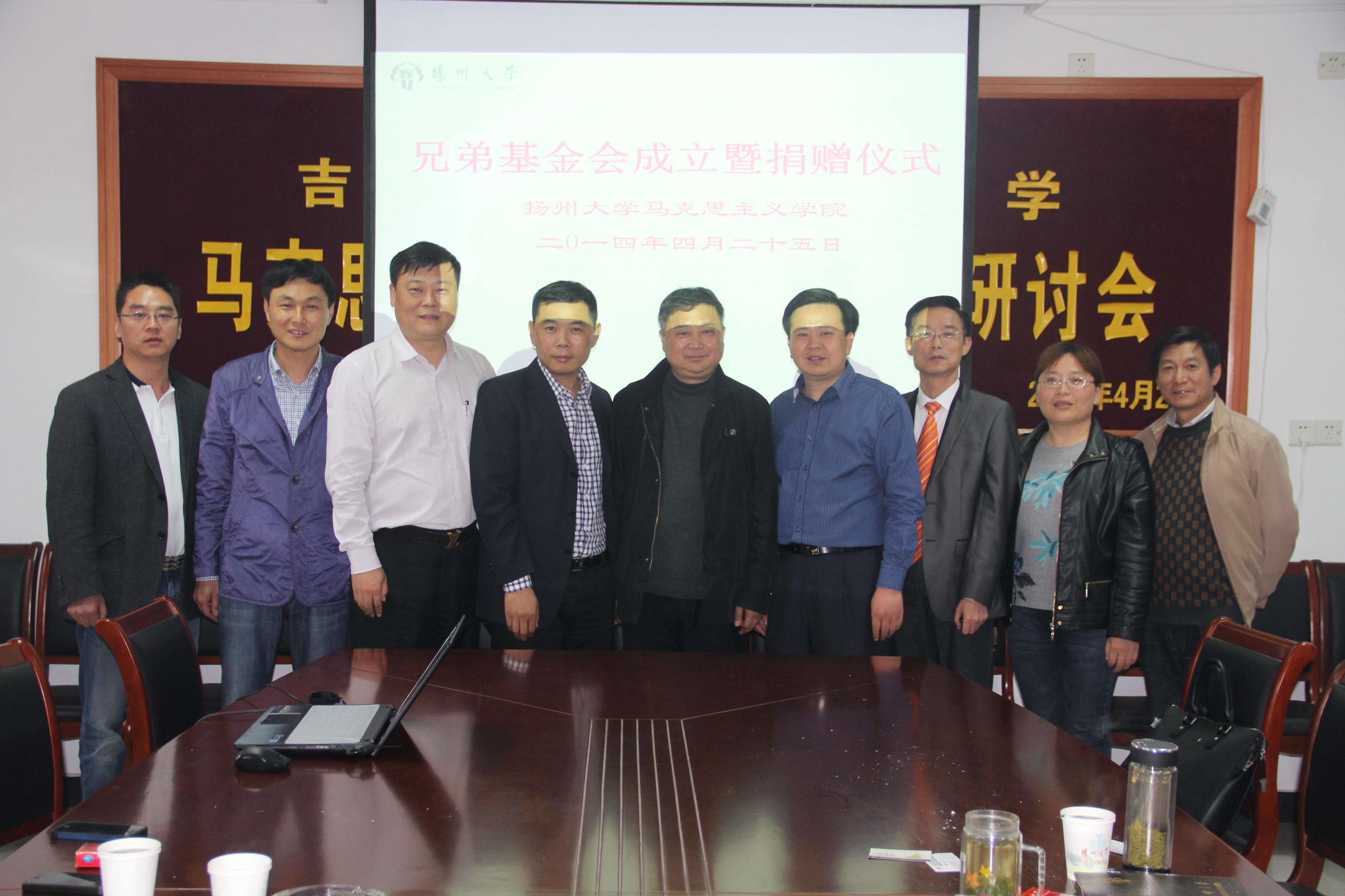 2014年4月25日下午3:00,我院在二楼S209会议室举行了“兄弟基金会”成立暨捐赠仪式。院党委书记吴荣军、院党委副书记左红梅、扬州市开发区公安局政委周明,四位爱心企业家参加了本次活动。