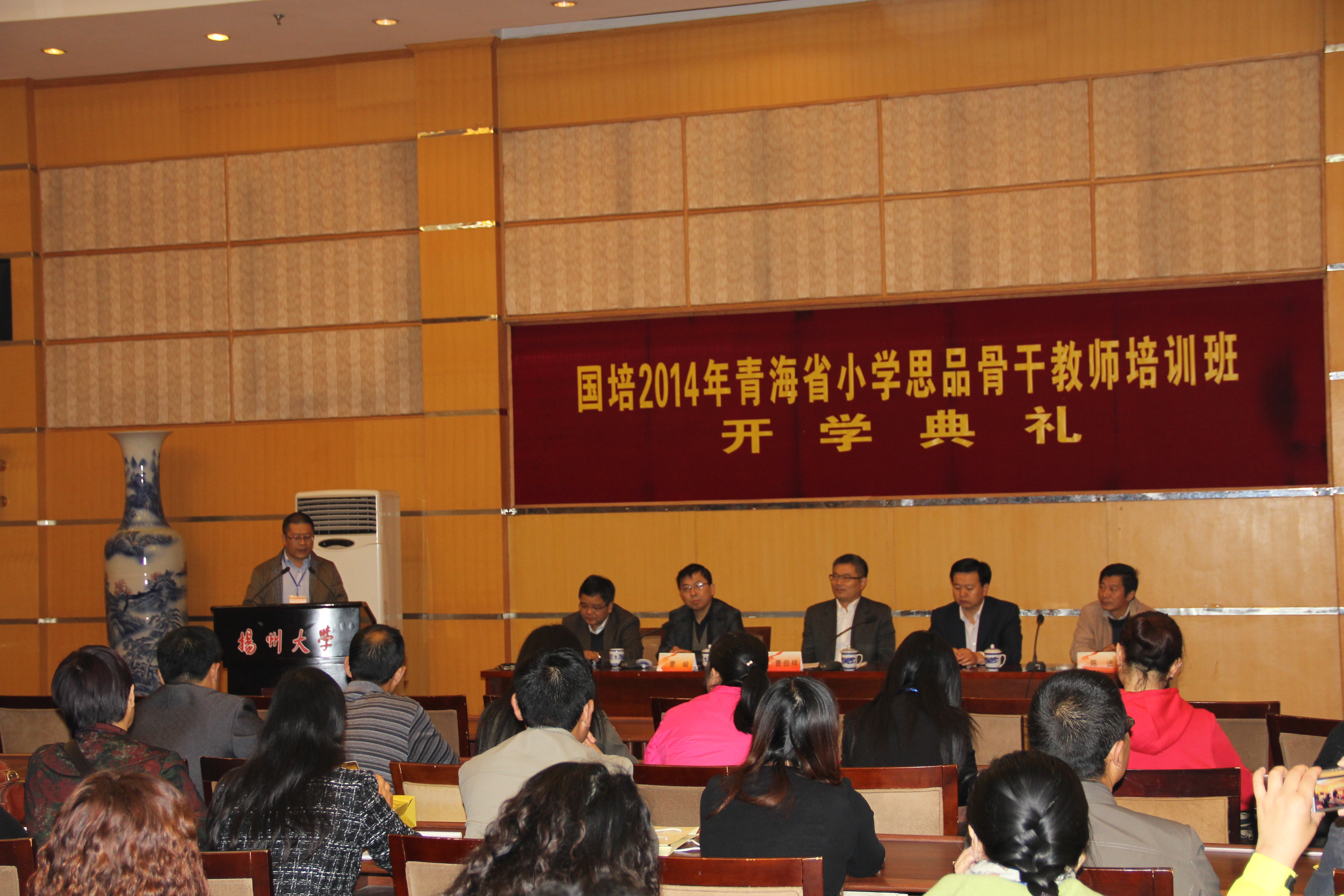 教育科学学院(师范学院)副院长曹伯祥介绍了扬州大学的基本情况,他勉励学员珍惜机会,通过培训不断优化和完善自身素质和能力,更好地胜任教书育人的重任,以出色的业绩来回报国家的关心和厚爱。本期培训班班主任、政教专业部主任刘华教授和青海省西宁市湟中县甘河滩镇中心学校坡家学校教师殷全寿作为教师和学员代表分别发言。