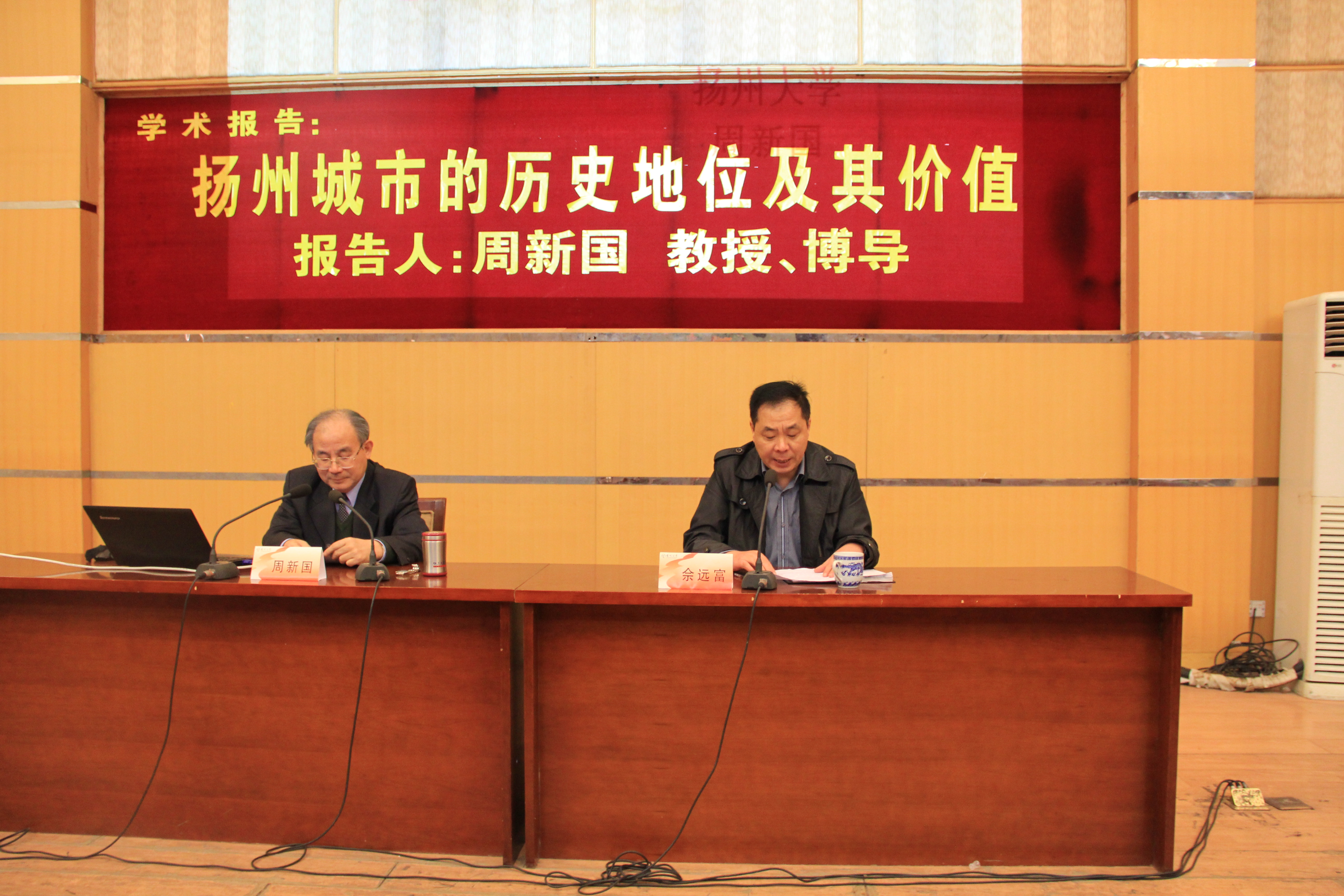 4月1日下午,著名历史学家、我校博士生导师周新国教授应邀为我院师生做了主题为“扬州城市的历史地位及其价值”的学术报告。佘远富院长主持报告会。