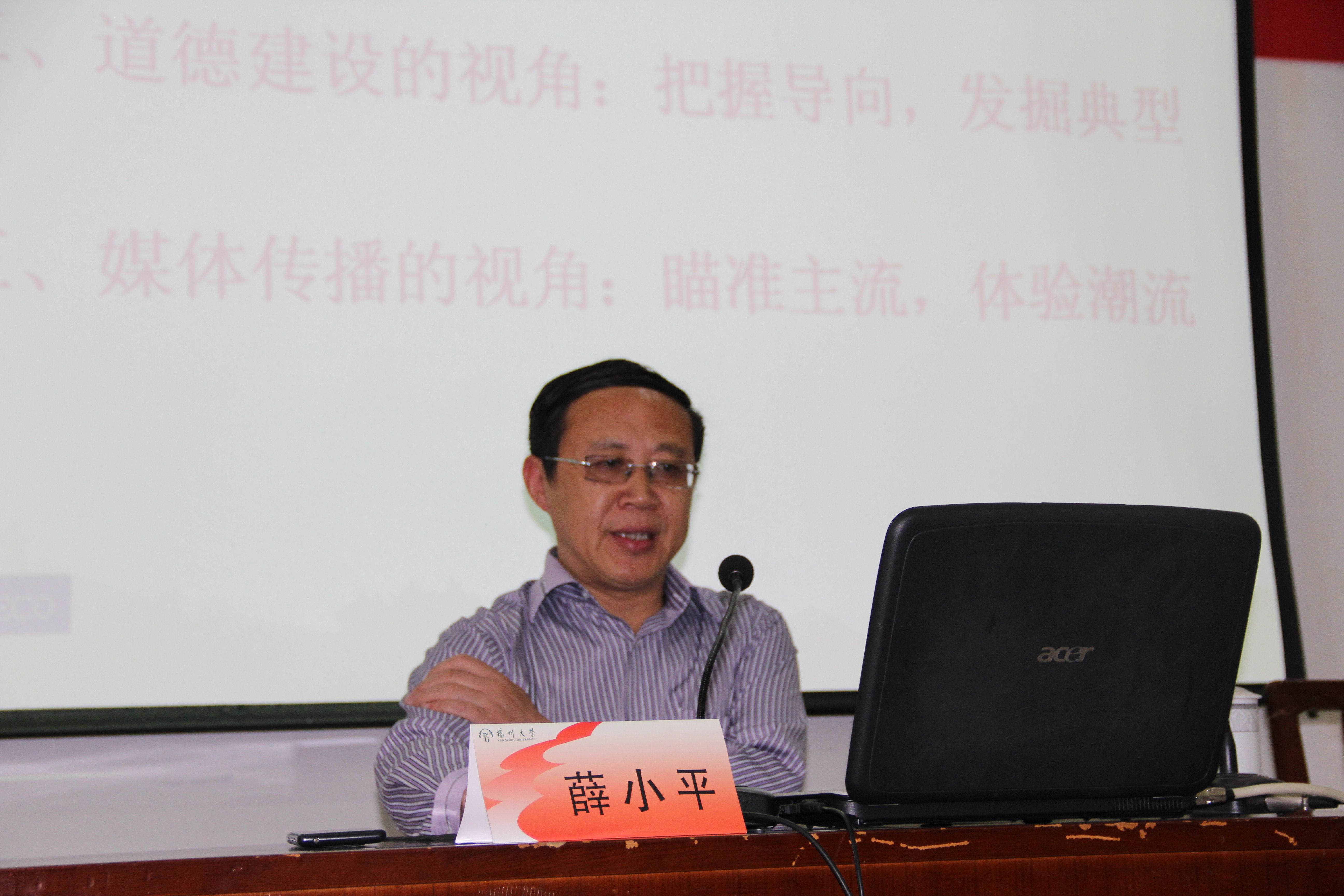 617日下午,校党委宣传部薛小平部长应邀为我院全体教师做了题为《舆论引导与思想政治工作》报告,报告会由院党委吴荣军书记主持。报告会上,薛部长首先介绍了当前舆论引导与思想政治工作概况,并重点介绍了意识形态领域热点和难点问题;结合国内外形势及其背景,薛部长详细解读了中央《关于进一步加强和改进新形势下高校宣传思想工作的意见》和省委实施意见,阐明了高校宣传思想工作的新变化、新特点,强调了高校思想政治理论课教师在宣传思想工作领域内的重要作用和特殊地位。整场报告会,薛部长结合自身工作经历,引用时政热点和网络舆情,围绕做好新形势下的舆论引导与思想政治工作有针对性提出了应对策略。(院新闻社金叶滢)