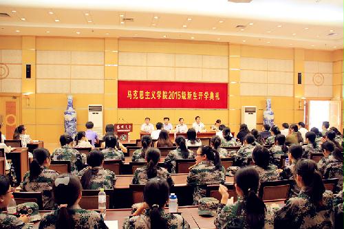 全体院领导,学位点、政教专业负责人,院机关工作人员,新生班主任,院学生组织负责人,以及全体2015级新生出席了典礼。