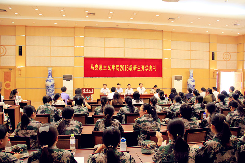 9月7日上午8:30,马克思主义学院在荷花池校区教学主楼二楼多功能厅隆重举行了2015级新生开学典礼。开学典礼由党委副书记、副院长左红梅主持。胡立法教授作为教师代表发言,希望全体新生能够在形成独立人格,培养综合能力的最重要阶段,修身、修心和修学,做一个品质高尚、富有信仰和思想、有学问的人。新老生代表相继发言表示,在今后的学习过程中会勤学好问、坚持不懈,不断培养自己的创新精神,努力提高“为学、为人”的境界,力争使自己成为一名优秀的大学生。最后,佘远富院长对2015级新生的到来表示热烈的欢迎并发表了热情洋溢的讲话。佘院长向全体新生介绍了学院的悠久历史、学科教学、办学成果等情况,并用“五个学会”勉励全体新生,学会适应,善于规划;学会做人,健全人格;学会担当,志存高远;学会学习,求知创新;学会思考,积极实践。