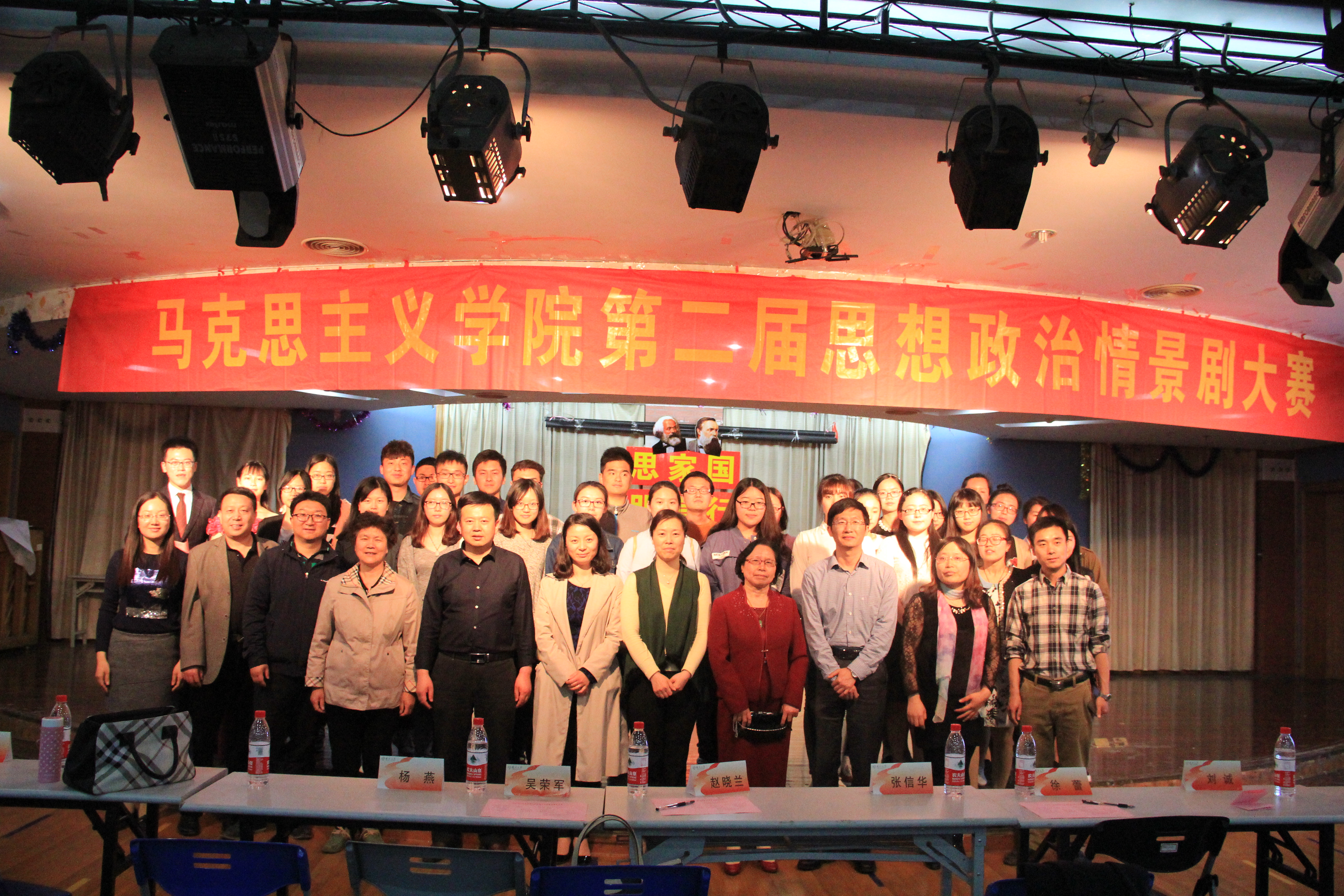 为了进一步贯彻落实学校班团活动指导意见精神,提高班团活动参与率和受益面,形成人人参与,人人提高的良好班团活动氛围。4月14日,马克思主义学院在荷花池校区大学生活动中心二楼多功能举办了第二届思想政治情景剧大赛。校党委学生工作部部长、学生工作处处长张信华老师,校研究生院副院长、研究生工作部部长赵晓兰老师,校团委书记徐蕾老师,马克思主义学院关工委副主任杨燕老师、刘诚老师,院党委书记吴荣军老师、党委副书记左红梅老师以及学院全体本科生、研究生班主任出席活动并担任评委嘉宾。