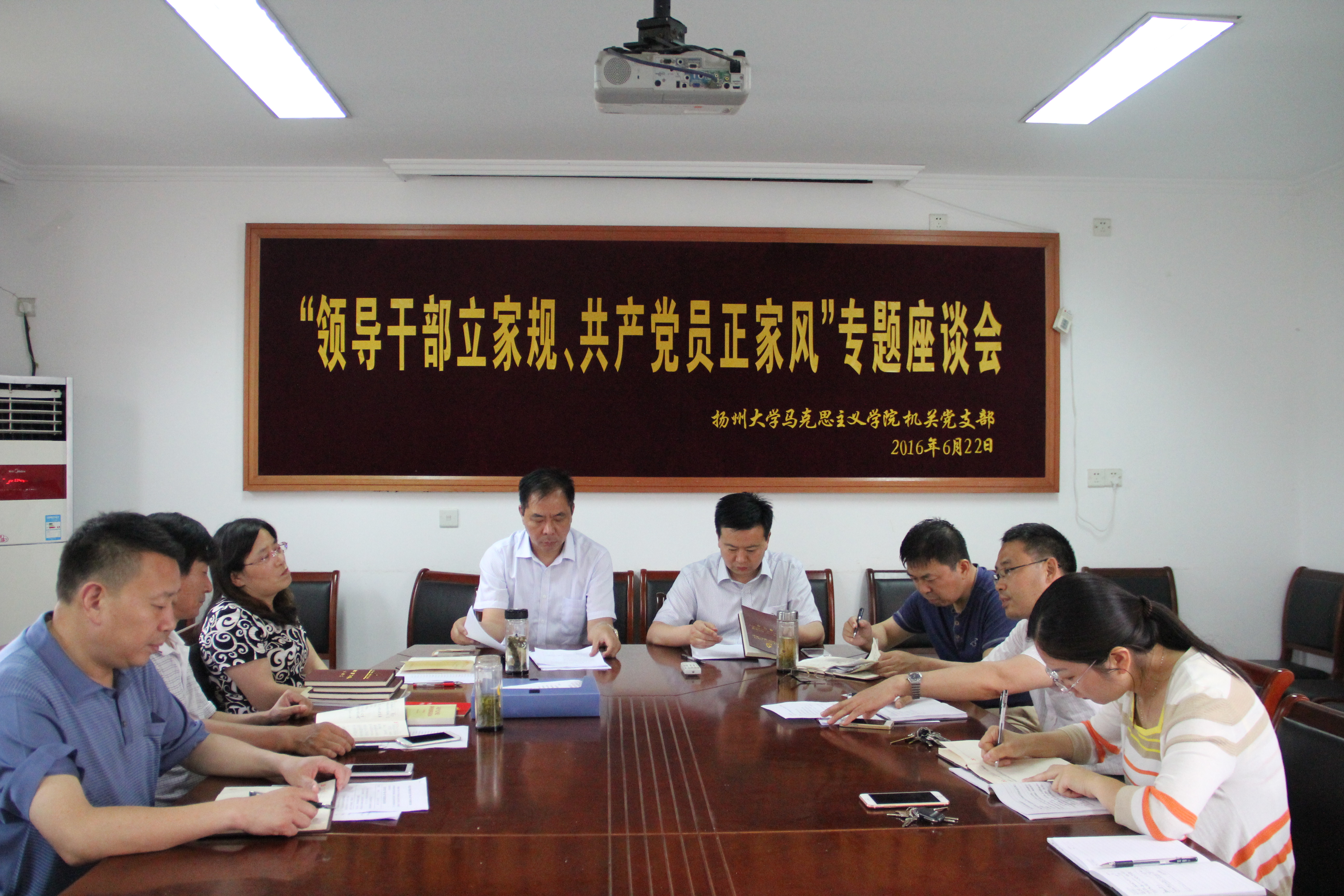 6月22日,马克思主义学院机关党支部在学院S209会议室召开“领导干部立家规、共产党员正家风”专题座谈会。机关全体干部和党员出席座谈会。
