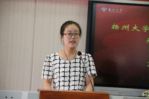 教师代表唐慧玲老师发言,希望新同学认识到步入大学后自觉自主学习的重要性,建议新同学在求学路上要研读经典、厚积薄发,要戒骄戒躁、胸怀静气。