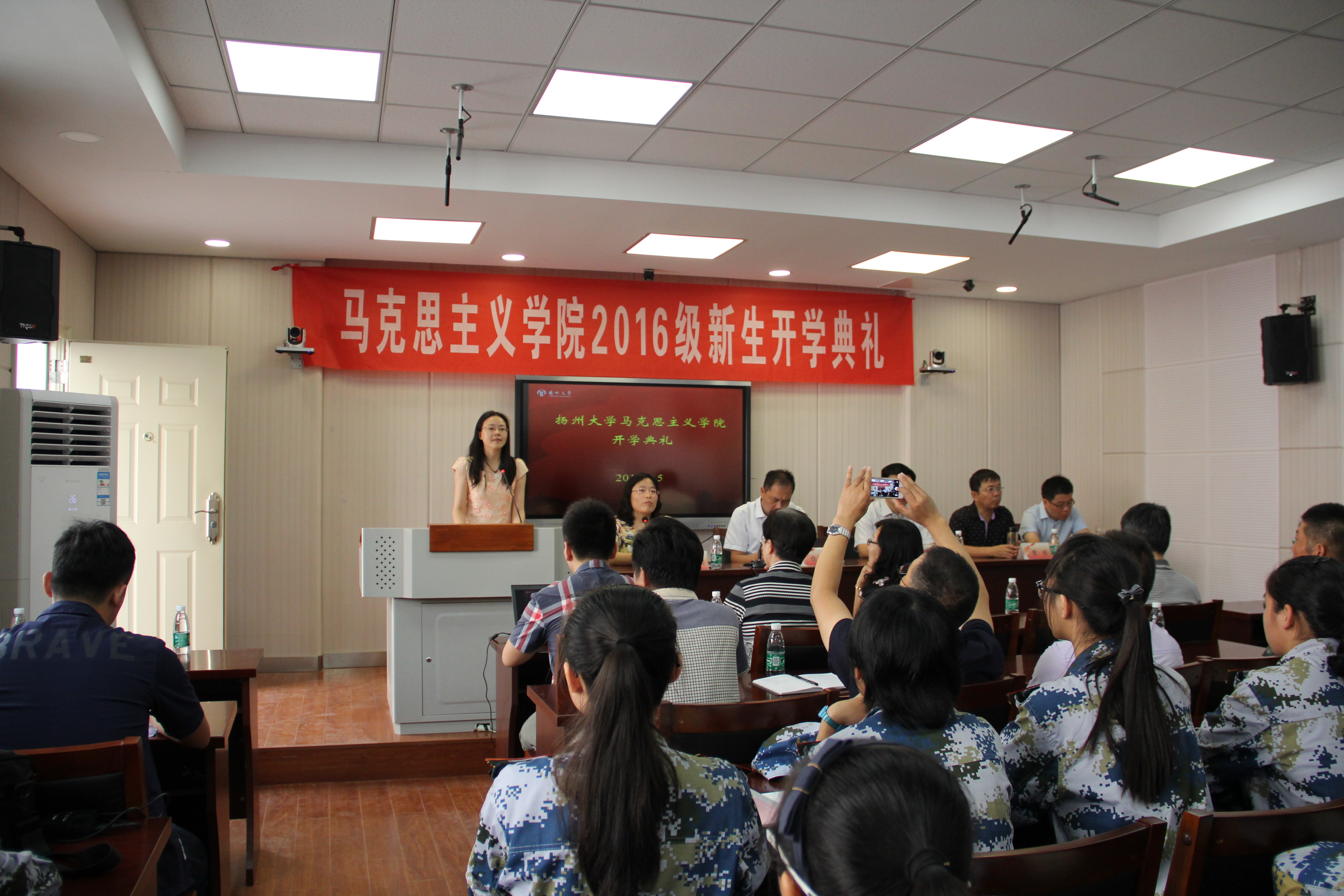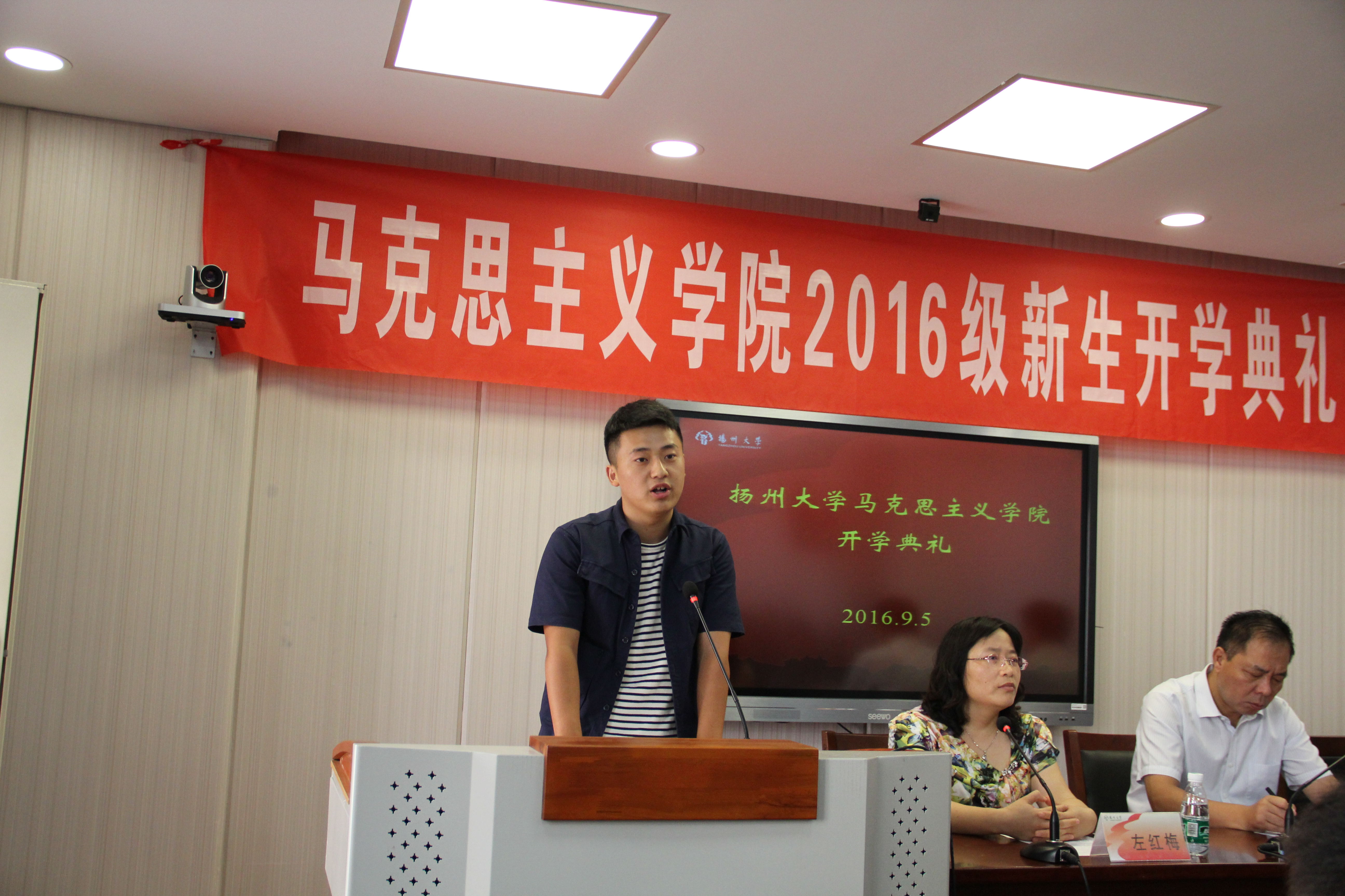 9月5日上午8:30,我院在学院思想政治教育实验教学中心隆重举行了2016级新生开学典礼。开学典礼由院党委副书记左红梅主持。