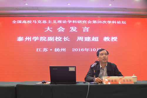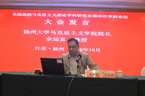 10月21日至23日,由全国马克思主义理论学科研究会、扬州大学联合主办,我院以及江苏省中国特色社会主义理论体系研究中心扬州大学基地承办的全国高校马克思主义理论学科研究会第26次学科论坛在扬州召开。论坛以“‘四个自信’和马克思主义在中国的发展”为主题。全国高校马克思主义理论学科研究会副会长顾钰民、钟明华、艾四林,江苏省教育厅社政处处长王伟,中共江苏省委宣传部理论处副处长许益军,扬州大学副校长刘祖汉等出席研讨会,来自全国20个省市、60所高校的马克思主义理论学科专家学者,《红旗文稿》、《思想理论教育导刊》等杂志负责人共100余人参加研讨会。院长佘远富教授主持开幕式。