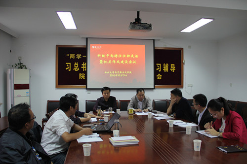 10月19日下午,学院在院行政办公楼S209会议室召开科级干部聘任任职谈话暨机关作风建设会议。党委吴荣军书记主持会议。