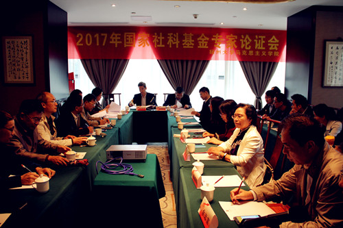 10月23日,学院召开2017年国家社科基金专家论证会。本次论证会邀请到全国高校马克思主义理论学科研究会副会长、中山大学马克思主义学院钟明华教授,全国高校马克思主义理论学科研究会副会长、清华大学马克思主义学院院长艾四林教授,大连理工大学马克思主义学院魏晓文教授,南京信息工程大学宣传部部长周显信教授组成专家组,对我院教师2017年度拟申报的近20项国家社科基金项目进行论证。佘远富院长对我院项目申报情况作了总体说明,胡立法副院长主持会议。