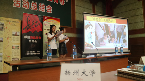 长征胜利80周年之际,在中央网信办网络信息传播局的指导下,中国青年报社主办了“长征触·摸热血青春”活动,共从全国高校遴选9支暑期社会实践团队重走长征路、寻访红军故事。我院“红军长征精神”宣讲团作为唯一一支非遴选特邀团队参与本次总结表彰大会,与其他9支团队共同分享宣讲团的故事。分享会上,“红军长征精神”宣讲团代表生动介绍了团队的前期筹备、宣讲历程、团队成果情况,以及宣讲所闻所感。分享结束后,我院代表与各团队代表、北京高校媒体代表以及中国青年报中青在线记者进行了深入交流学习。