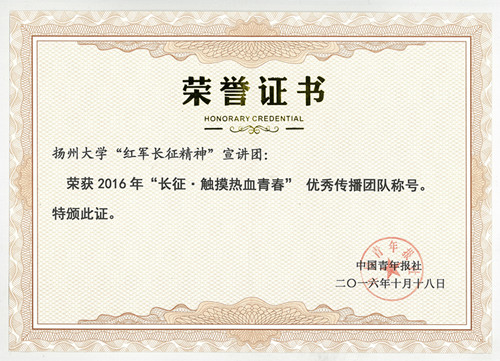 扬州大学“红军长征精神”宣讲团由马院在校本科生和研究生共21人组成,其中本科生11人,研究生10人。团队自今年3月份启动成立以来,先后赴扬州大学第二附属幼儿园、扬州市瓜洲镇邗江实验幼儿园、扬州大学第一附属幼儿园、扬州市三元桥小学、汶河小学、春江花园社区、连福社区、冯庄社区、隆觉村等进行了十余次宣讲,受益人数达千人,并开发出以手绘小红军为基础形象的“小红军社会主义核心价值观”贴纸、海报,小红军徽章,“小红军带你游扬大”系列明信片,小红军文化衫等系列成果。整个宣讲活动受到了社会的广泛关注和认可,先后被《中青在线》、《新华日报》、《扬州晚报》、《扬州大学报》等媒体刊载报道。(通讯员:孙倩倩 采编:姜露)