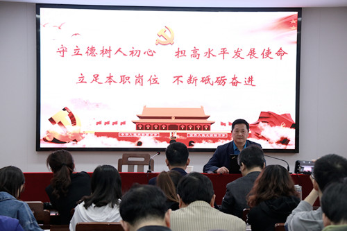 刘继平在题为《守立德树人初心,担高水平发展使命,立足本职岗位,不断砥砺奋进》的党课中,首先分享了学习习近平新时代中国特色社会主义思想的体会。他指出,全体党员要认真读原著、学原文、悟原理,紧密结合“不忘初心、牢记使命”主题教育,开展多形式、分层次、全覆盖的学习培训;在学习理论上,每个人要舍得花精力,全面系统学,及时跟进学,深入思考学,联系实际学。刘继平对学院目前发展存在的问题进行了认真查摆和原因剖析,将学院目前存在的问题概括为六大方面,并提出了有针对性的整改举措。刘继平强调,“不忘初心、牢记使命”要求我们守立德树人初心,担高水平发展使命,立足本职岗位,不断砥砺奋进,用高质量党建引领学院高质量发展,要善于找存在差距,抓整改措施落实,持续推动学院各项事业稳中求快地发展。