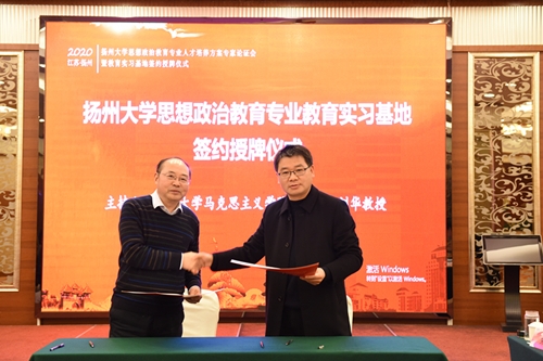 扬州大学教育教学评估心主任郑刚在会议致辞中指出了此次会议召开的背景,并向参会专家介绍了师范专业认证的基本情况,指出了人才培养方案的修订以及教育实践基地对于专业认证工作的重要性。扬州市江都区教育局局长、江苏省江都中学校长周明龙在致辞中祝贺扬大马院政教专业近年来所取得的巨大成绩,并表示作为地方教育行政部分和中学,会大力支持马院政教专业的人才培养工作。