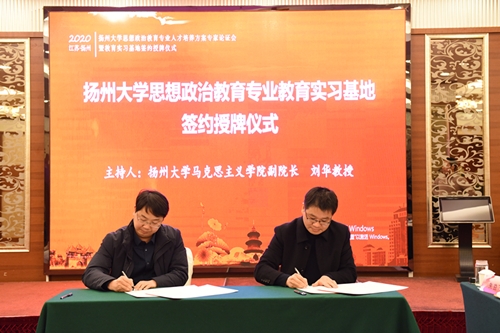 论证会结束后,胡立法院长与各中学校长举行了教育实践基地签约授牌仪式。胡院长在会议闭幕词中对各位专家百忙之中抽空来支持学院专业建设表达了谢意,他表示,学院会认真消化吸收专家们的建议,进一步提升我院本科生人才培养质量,培养适合中学教育所需的优秀师资。