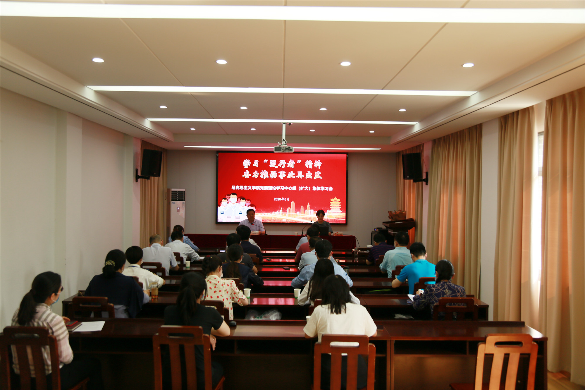 5月27日,学院党委理论中心组(扩大)组织举行“学习‘逆行者’精神 奋力推动事业再出发”主题集体学习会,校附属医院援湖北医疗队队员、重症医学科主管护师朱敏应邀作分享报告。