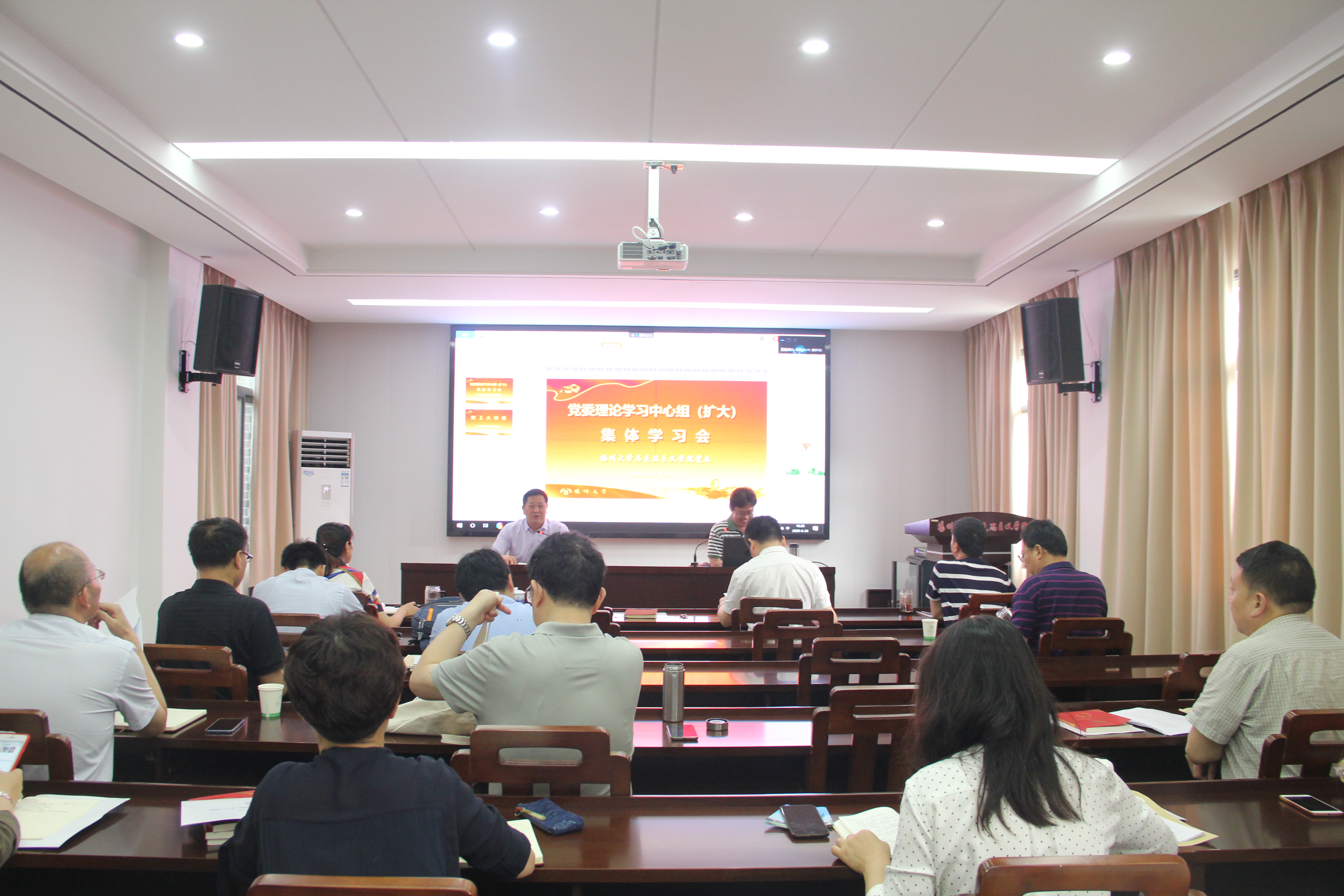 全体院领导、党支部书记、教研部主任线下出席参加集体学习,其他教职工通过线上形式参与学习会。