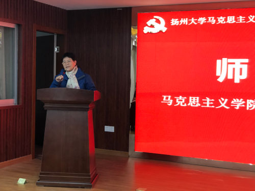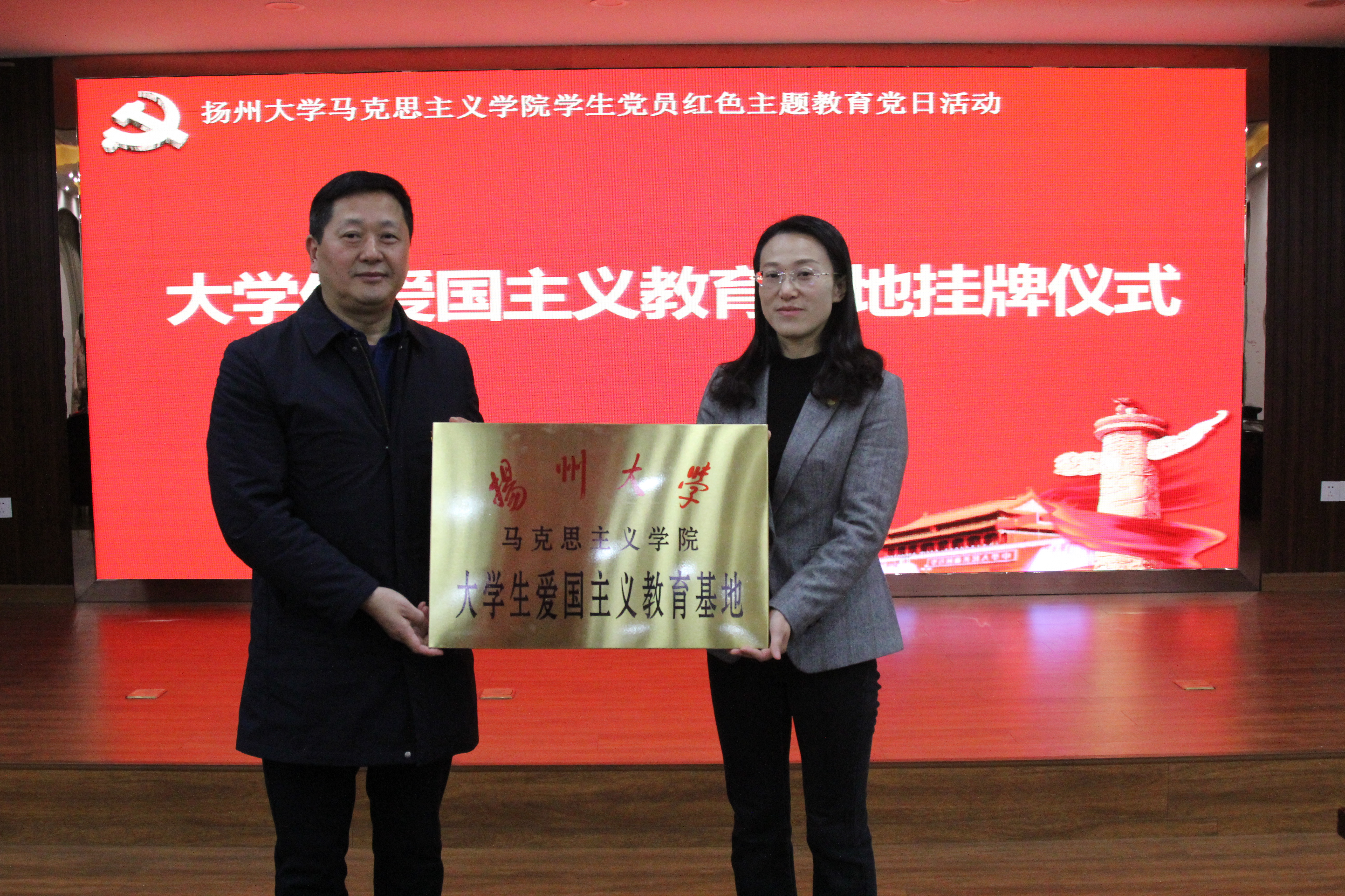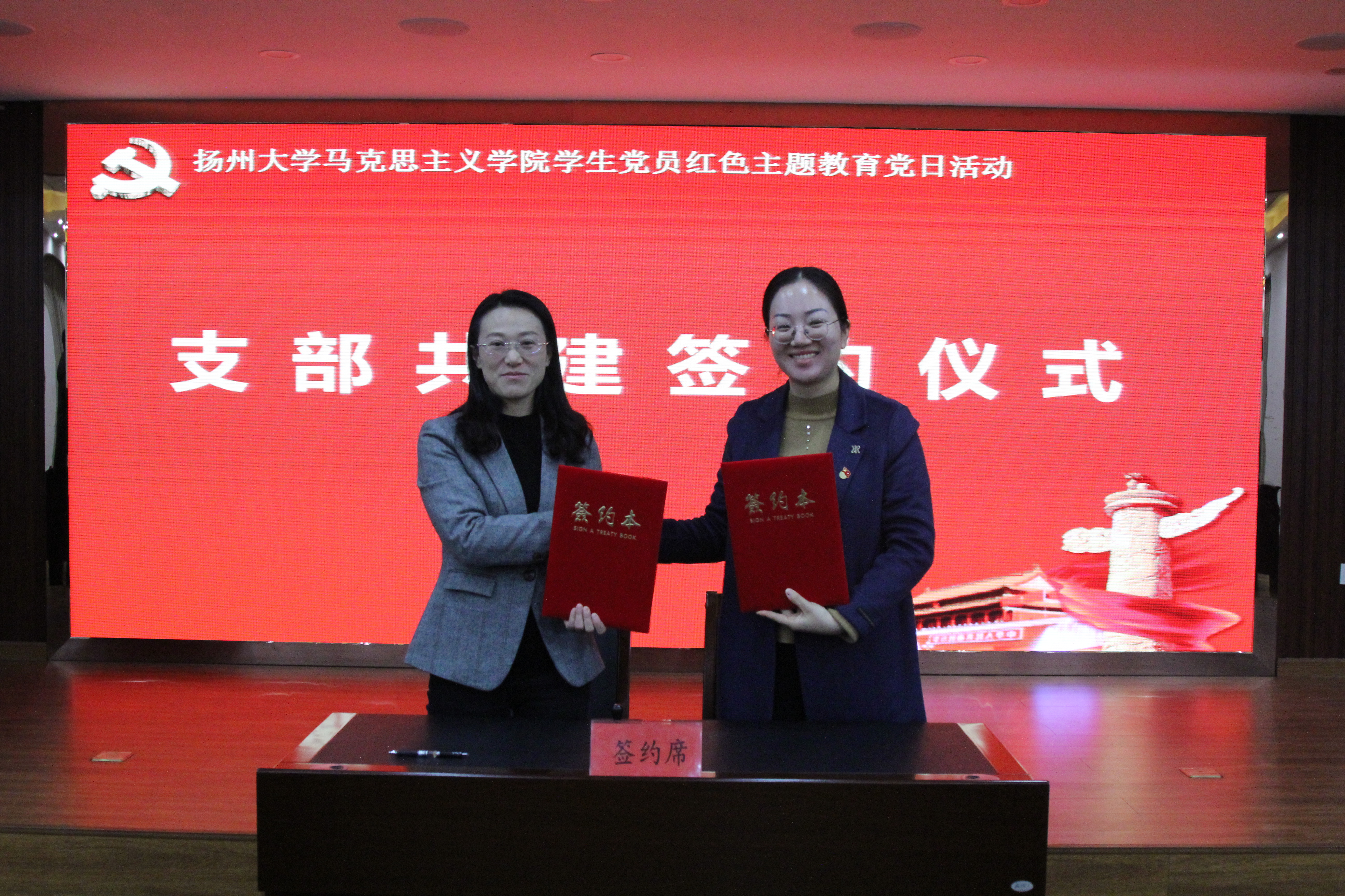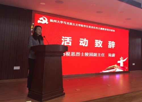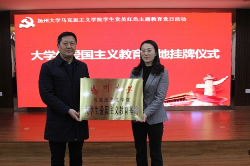在杨根思烈士陵园会议室,我院本科生党支部与杨根思烈士陵园党支部举行支部共建活动。杨根思烈士陵园副主任陆蔚致辞,介绍了杨根思的英雄事迹和杨根思烈士陵园的相关情况;我院党委副书记黄蓉发表讲话,介绍了我院党建工作成果和本科生党支部工作开展情况。本科生党支部书记杨方与陆蔚作为支部代表签约共建。院党委书记刘继平与陆蔚共同为“扬州大学马克思主义学院大学生爱国主义教育基地”和“扬州大学马克思主义学院思政课实践教学基地”揭牌。