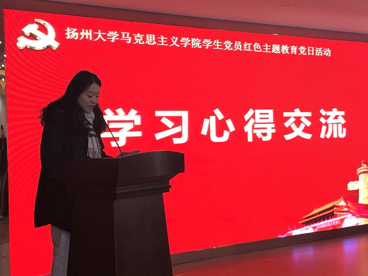 随后,本科生党员代表景文清、孙嘉瑞、严新玥分享参观学习心得。刘方云老师向党员们分享了自己的抗美援越的经历,教育同学们要坚定理想信念,要爱党爱国爱社会主义,爱这个伟大的时代,同时,他也希望党员同学们不忘初心、克服困难、成人成才,要干干净净做人、干干净净做事,做一个有扬大烙印的大学生。杨燕老师分享自己的三点体会,她认为全体党员要深学细悟“不忘初心 牢记使命”的深刻内涵;要学习英雄功臣,不负韶华,有勇于担当的使命感和责任感;要传承抗美援朝精神,在实践中锻炼成长成才。费迅老师带领全体党员重温了杨根思烈士的英雄事迹,并结合杨根思的“三个不相信”精神,鼓励学生党员要学习“四史”,在伟大奋斗中吸取继续前行的精神力量,保证党的事业永续发展,社会主义的红色江山永不变色。