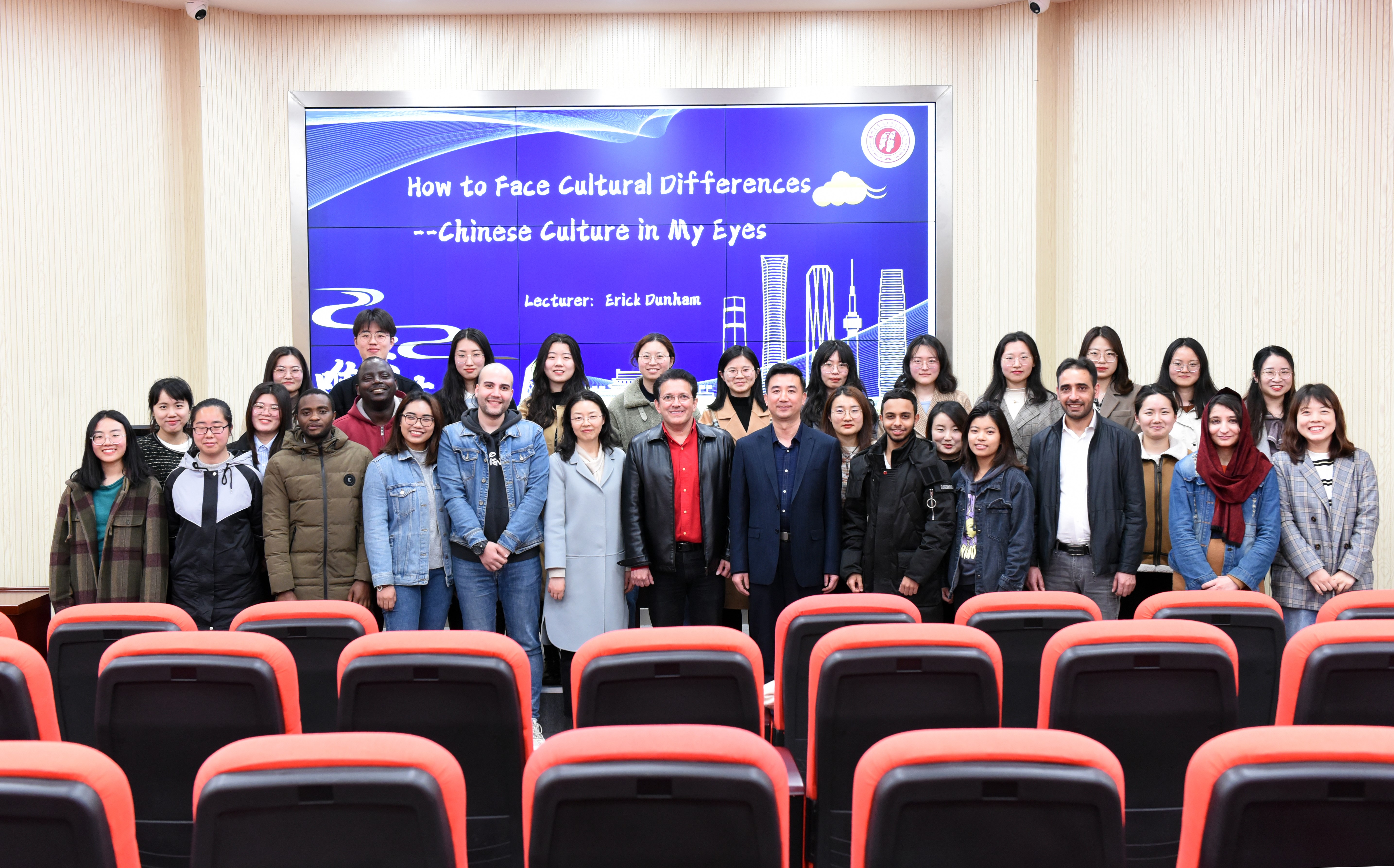 近日,学院唯实大讲堂“国际交流系列”第一讲在江阳路南校区教学楼“引航厅”顺利开讲。扬州大学外国语学院的埃里克·邓纳姆老师受邀以“How to Face Cultural Differences——Chinese Culture in My Eyes(如何应对文化差异——我眼中的中国文化)”为主题作了精彩的报告。