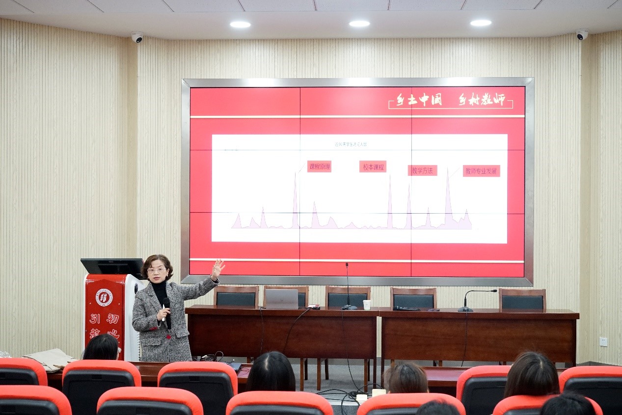 刘佳教授作了题为《“铸魂塑魄”:思想政治教育和教育学视野下的教师职业道德形塑》的报告。刘佳教授首先用自身多年思想政治工作经历鼓励在场同学热爱思政专业,树立学科自信。她以首届江苏省高校教师教学创新大赛作品《乡土课程》《学生为本、乡土为根,建设“行走在乡村”的教育学》为例,全面深入阐述了课程思政的设计理念;通过教学生活中的具体案例,阐明思想政治教育的现实挑战和时代责任;结合自身科研实践,探讨了多学科综合研究思想政治教育的重要意义。