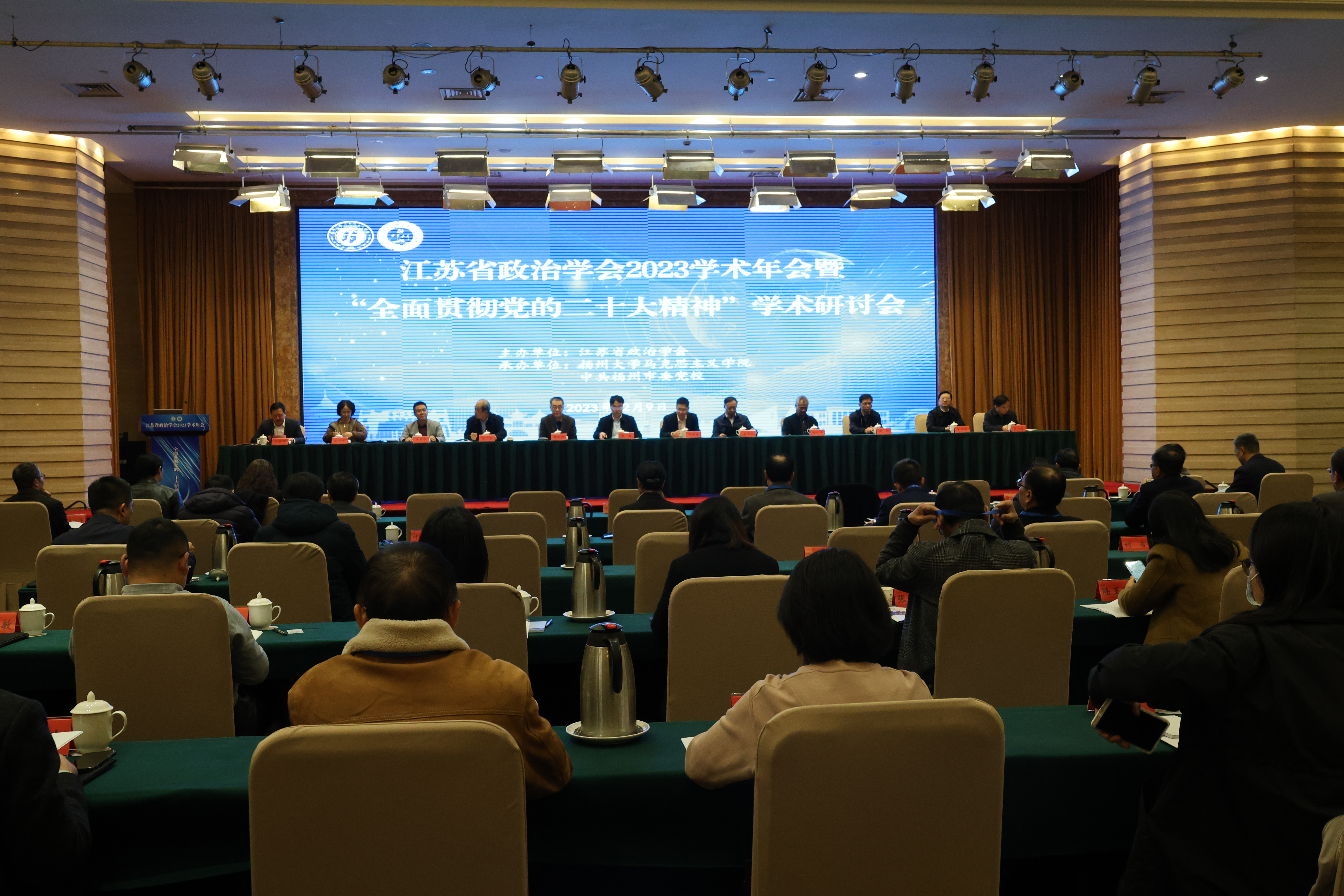 12月9日,江苏省政治学会2023学术年会暨“全面贯彻党的二十大精神”学术研讨会在我校召开。江苏省社科联党组成员、副主席张振,校党委常委、纪委书记、派驻监察专员邱庆峰,江苏省政治学会会长、南京大学张凤阳教授等出席活动并讲话。