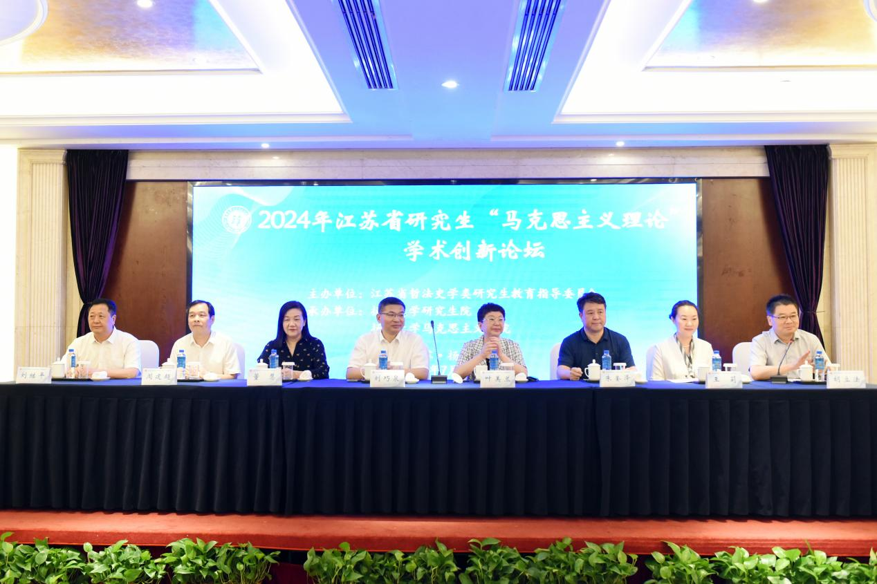 2024年7月6日,由江苏省哲法史学类研究生教育指导委员会主办,扬州大学研究生院、扬州大学马克思主义学院承办的2024年江苏省研究生“马克思主义理论”学术创新论坛在扬州市花园国际大酒店举行。江苏省哲法史学类研究生教育指导委员会主任委员、南京邮电大学校长叶美兰,扬州大学党委常委、副校长刘巧泉,江苏省哲法史学类研究生教育指导委员会秘书长朱奎泽出席论坛。