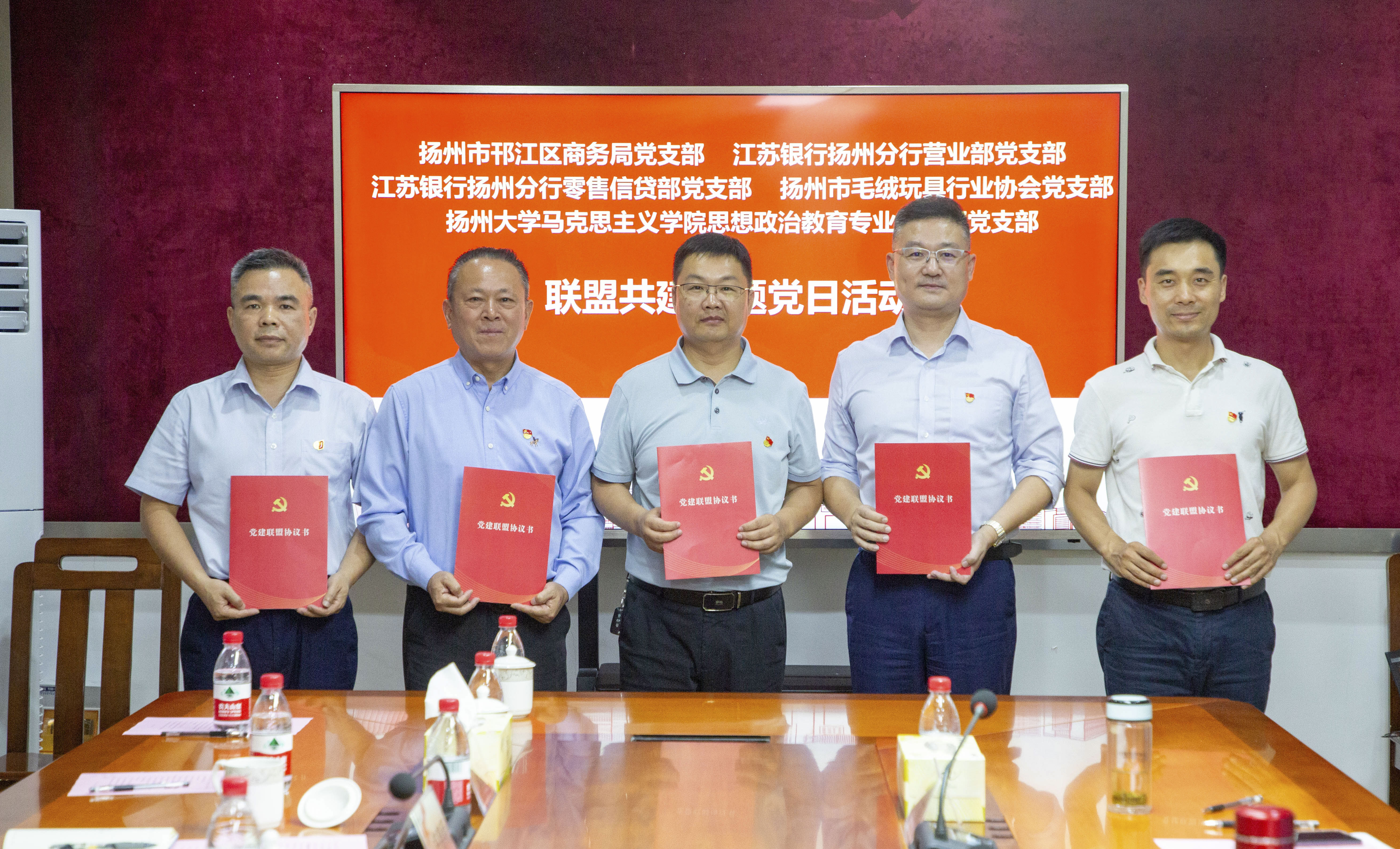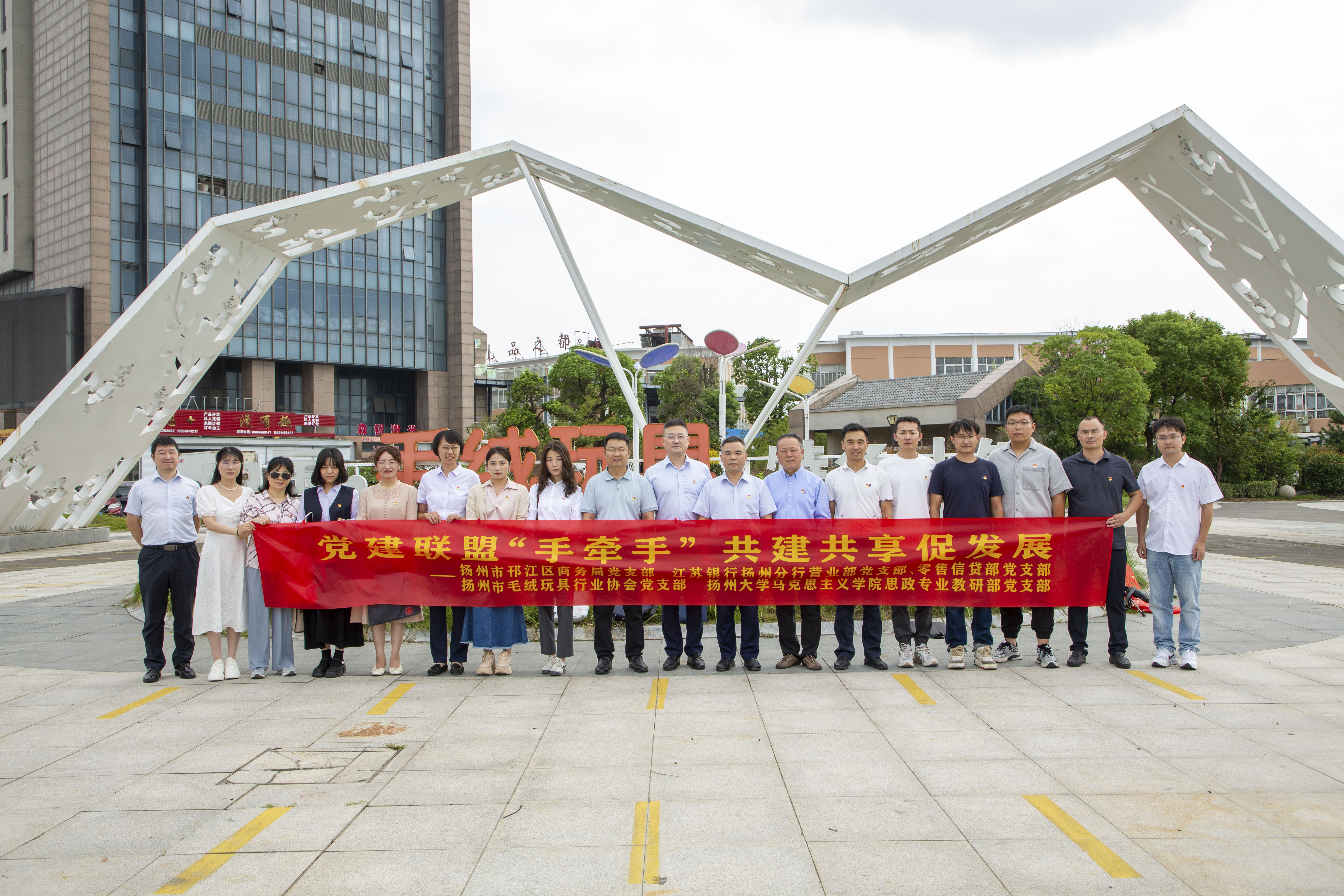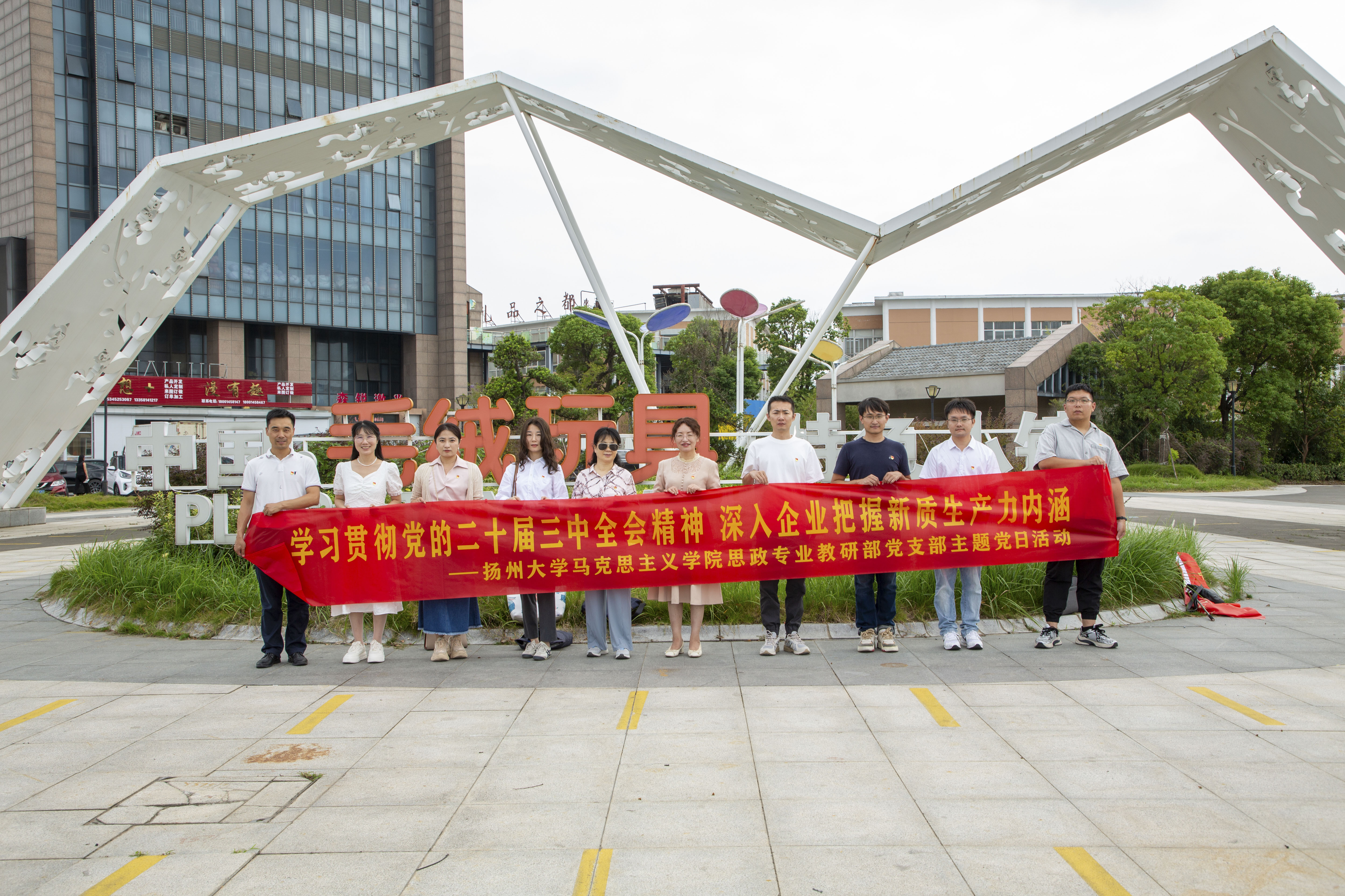 9月25日,我院思想政治教育专业教研部党支部和扬州市邗江区商务局党支部、江苏银行扬州分行营业部党支部、江苏银行扬州分行零售信贷部党支部、扬州市毛绒玩具行业协会党支部开展联盟共建主题党日活动,此次活动的主题是:“学习贯彻党的二十届三中全会精神 深入企业把握新质生产力内涵”。学院党委书记刘继平,副院长唐慧玲以及政教支部教师参加了本次活动。