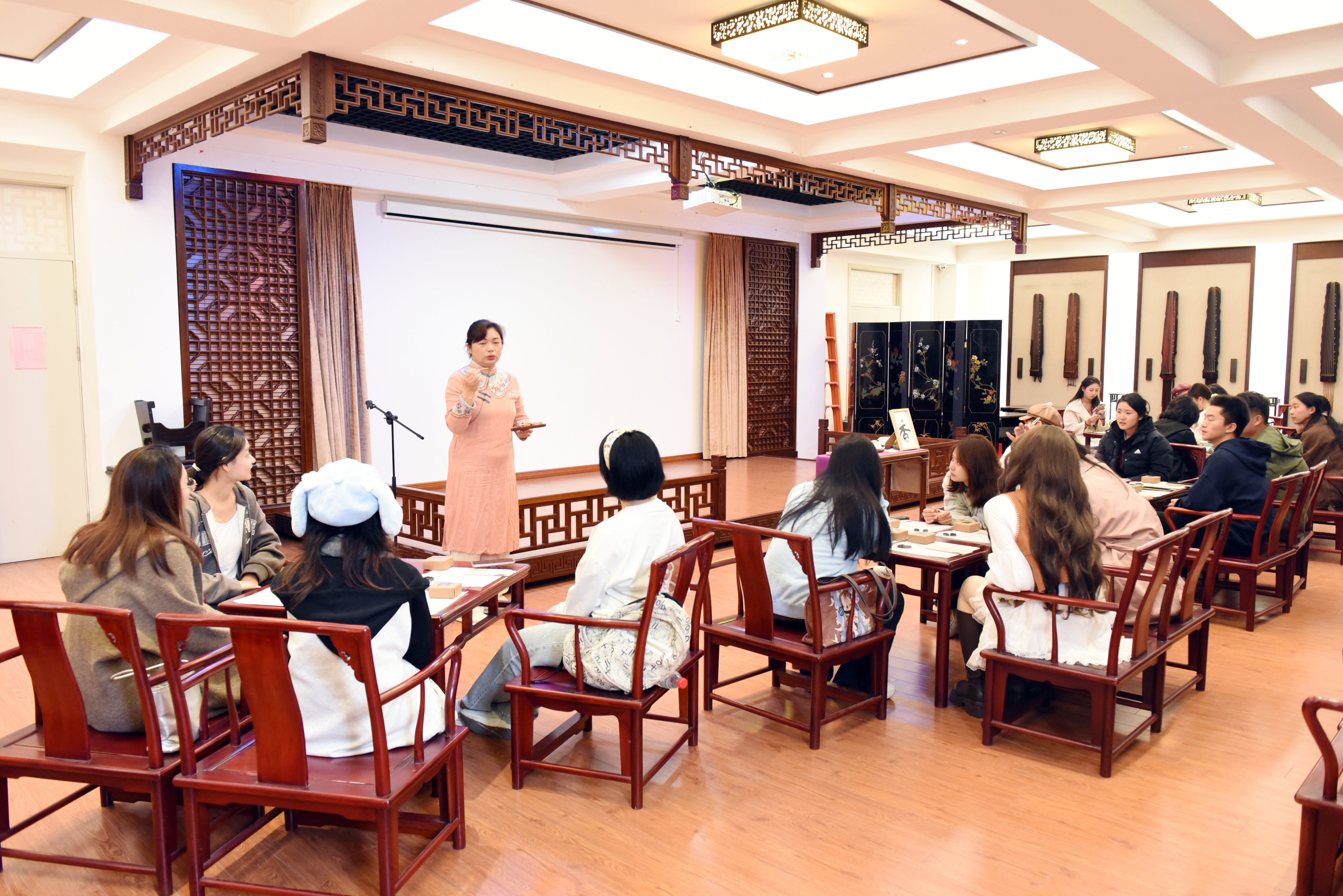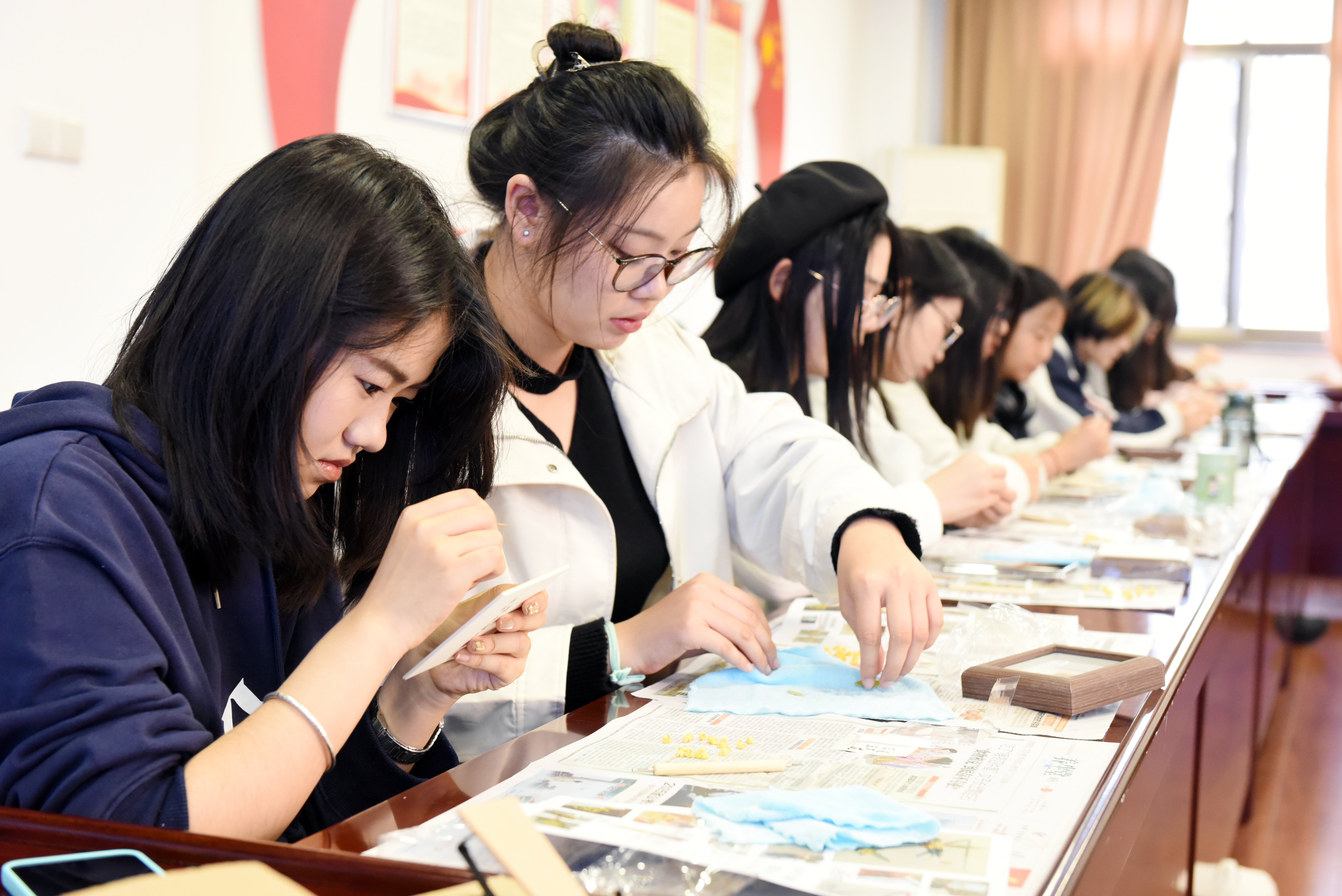 本次实践教学活动以“在非物质文化遗产中感受文化的力量”为主题,由扬州市文化馆三位非遗传承人担任现场教学主讲人,分别以扬州剪纸、通草花制作技艺、文人香制作技艺为体验项目,对三项非遗项目的历史文化背景、制作过程、蕴含的文化内容以及保存收藏技巧进行了详细介绍和解读。学生们认真听讲,积极回应,用心体会非遗项目所蕴含的文化力量;同时积极学习和探讨非遗项目的制作技艺,从材料的分类、裁剪到手法的定型、调整再到产品的装饰、保存,全流程亲身参与了三个非遗项目的制作过程。随后,学生们在文化馆工作人员的带领下,参观了非物质文化遗产文创获奖作品展,纷纷为各项充满浓郁文化气息的非遗作品感叹和赞美。