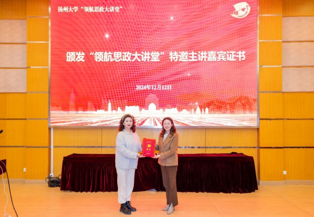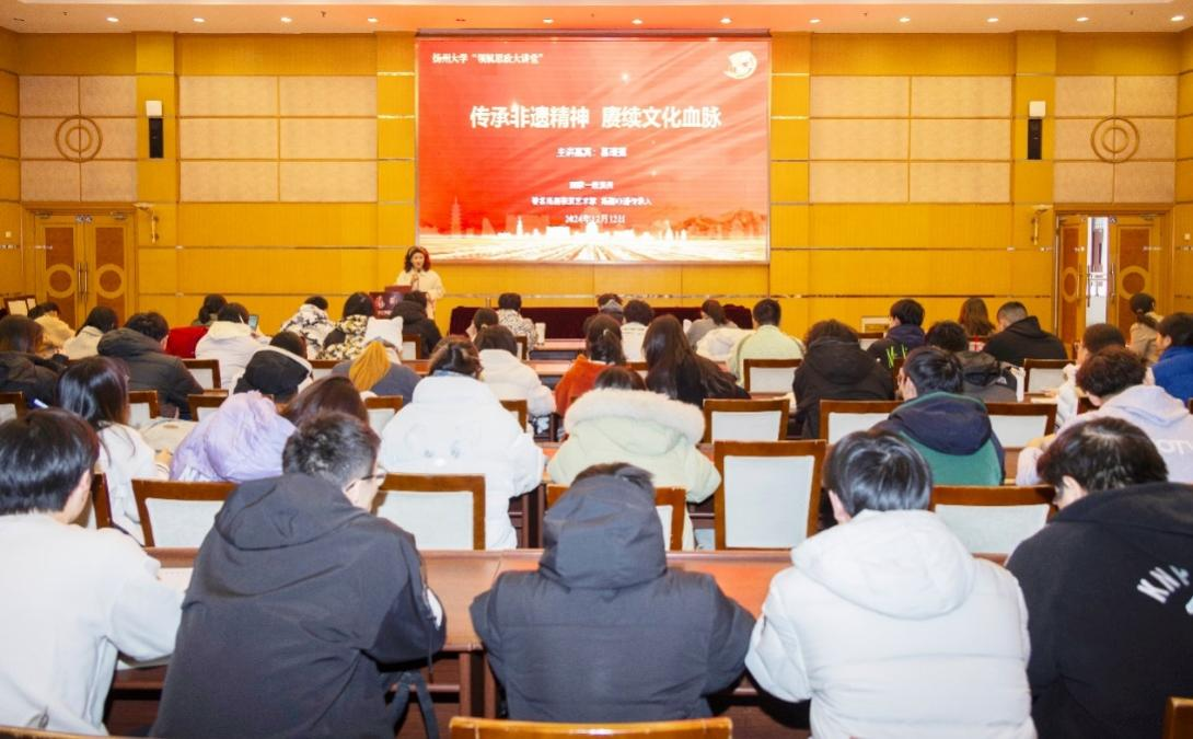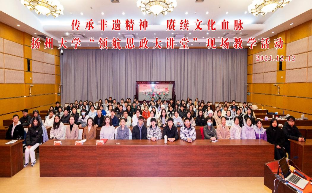 12月12日,扬州大学“领航思政大讲堂”邀请国家一级演员、中国戏剧家协会会员、中国百名优秀戏曲专业专兼职教师、江苏省非物质文化遗产代表性项目(扬剧)代表性传承人、扬州市政协委员葛瑞莲,走进“毛泽东思想和中国特色社会主义理论体系概论”的思政课堂,为来自兽医学院的120余名青年学子,上了一堂以“传承非遗精神 赓续文化血脉”为主题的思政课。