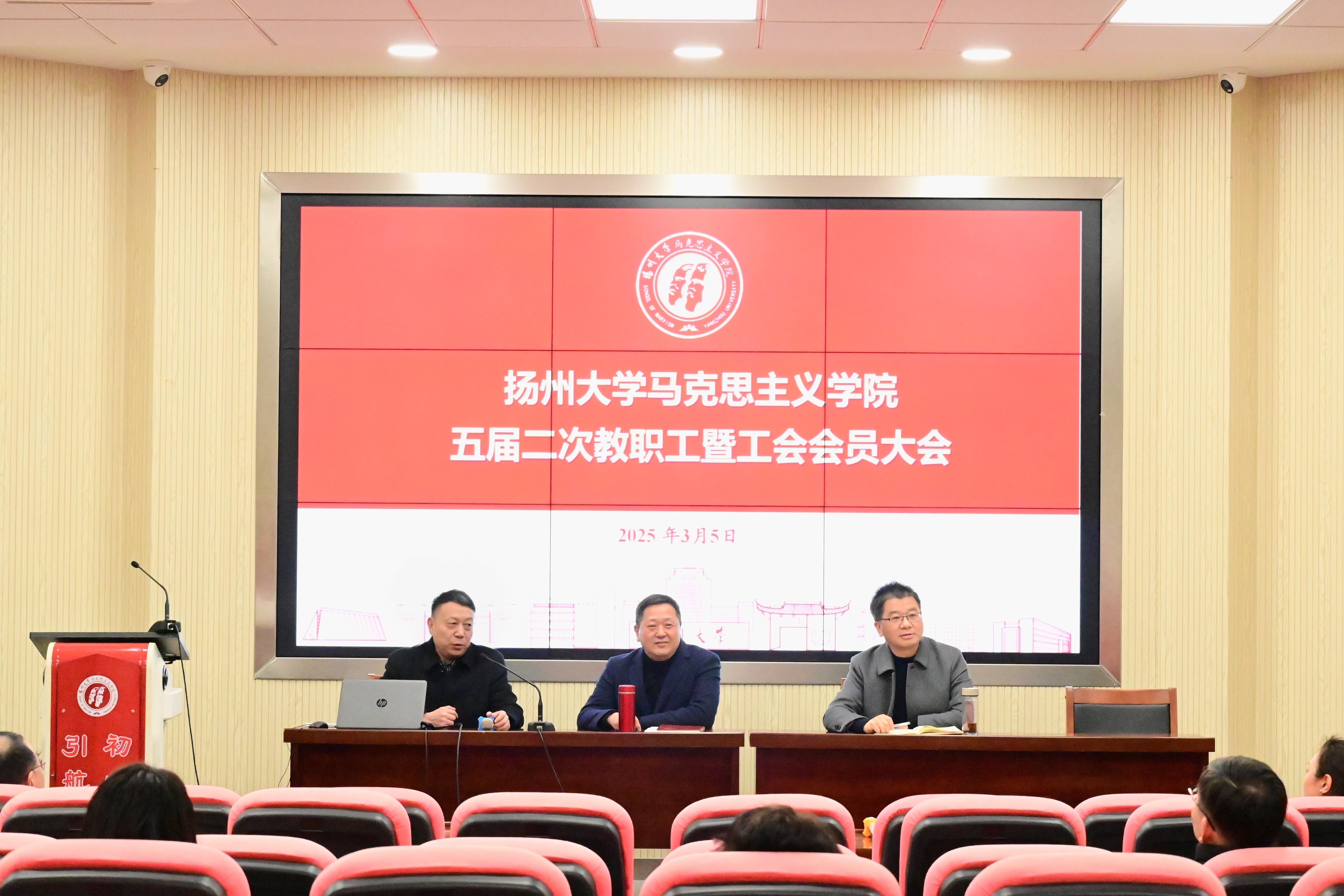 3月5日下午,学院在引航厅召开五届二次教职工大会暨工会会员大会。会议由院党委刘继平书记主持。