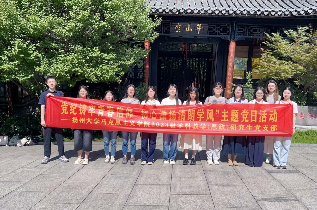 为引导研究生党员筑牢信仰根基、涵养清朗学风,强化研究生党员的党性修养与廉洁意识,6月22日,2023级学科教学(思政)研究生党支部组织支部党员前往扬州市平山堂廉政教育基地,开展了“党纪铸牢青春信仰 初心激扬清朗学风”主题党日活动。