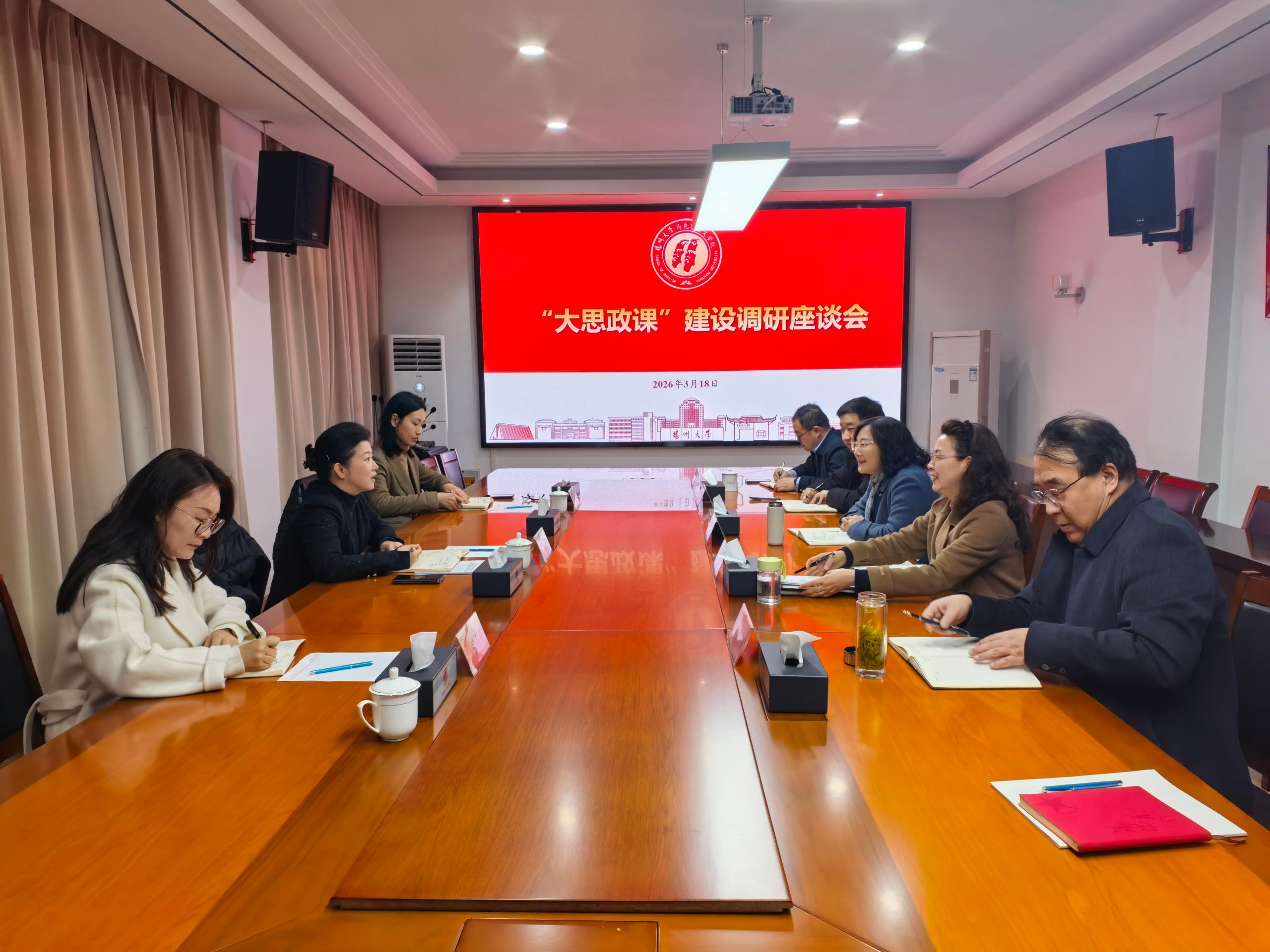 座谈会上,蔡颖蔚听取了学院主要负责同志的工作汇报,对学院取得的成绩予以肯定,并对学院未来发展提出新要求。她指出,一要加强队伍建设。思政课建设是马院立院之本,队伍建设是思政课建设的根本保障,需打通并拓宽人才引进通道,吸引更多优质人才加入马院。二要做强“运河思政”品牌。创新推动大中小学思政课一体化建设,依托教研培训、集体备课、示范课等形式搭建校内外长效合作平台,实现双向赋能,将“运河思政”打造为扬州大学马克思主义学院的特色品牌标签。三要整合校内外资源。一方面推动校内多学科交叉融合,找准差异化赋能点,培育新的研究方向;另一方面拓展校外资源,主动对接地方教育部门、场馆基地等,建好用好校外实践教学基地,积极推动文科实验室、“数字思政空间”落地,打造“行走的思政课堂”。四要强化宣传思想工作支撑。马院要为学校宣传思想工作扛起责任,尤其要在理论阐释和主流舆论引领上发力,结合今年重要时间节点,主动作为,围绕重大活动开展理论研究与思政教育,为构建中国哲学社会科学自主知识体系贡献扬大马院力量。