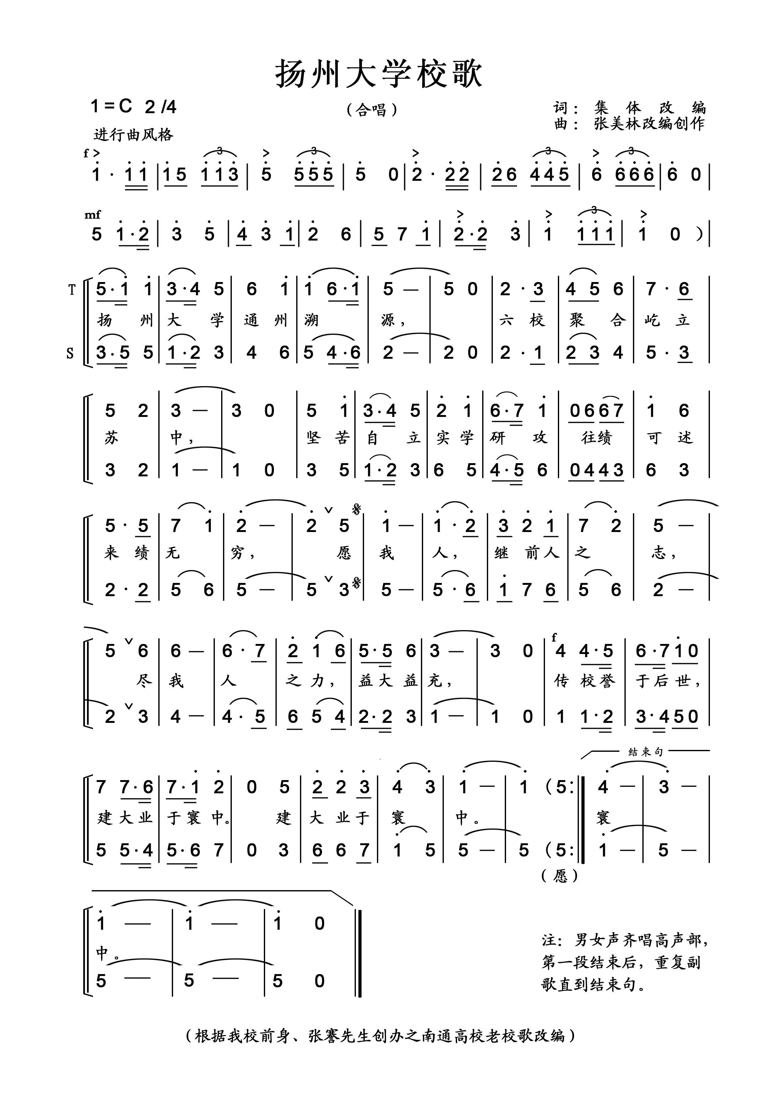 通过,扬州大学校歌已于日前正式发布。为在全校师生员工中传唱推广校