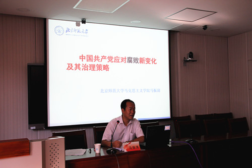 9月26日下午,北京师范大学马克思主义学院教授、博士生导师马振清博士应邀在学院思想政治教育实验中心,为我院师生做了题为《中国共产党应对腐败新变化及其治理策略》的学术报告。报告会由院党委副书记左红梅主持,部分教师及研究生参加报告会。