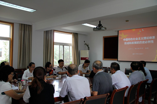 报告结束后,与会教师对唐老师的精彩展示予以了高度评价,并围绕展示主题进行了广泛而深刻的交流研讨。张爱武教授认为唐老师的展示内容详实、表述精彩,从中受到很大启发,同时也提出在分析中国特色社会主义理论体系形成的现实依据中要充分考虑到国情、世情、党情的深刻变化,以及这些变化对中国特色社会主义理论体系的影响。曹峻副院长指出,要上好概论课必须把握“两个逻辑”,一是必须把握教材的内在逻辑,二是要把握中国特色社会主义理论体系内在的逻辑体系。同时,他还强调教师要转变教学理念,广泛运用先进的教学方法和手段进行教学,以此来解决“课程多、时间少”,线上线下互动的问题。