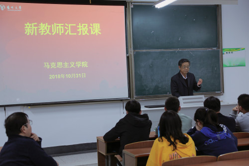 10月31日,2018年扬州大学新教师汇报课在江阳路南校区25号楼111教室举行。此次活动由教务处主办,马克思主义学院承办。马克思主义学院曹峻副院长主持活动。来自马克思主义学院和法学院的5名2017年新入职教师作了精彩的专业课程汇报。曹金华教授代表专家组对课程汇报做了全面点评,并提出改进意见和建议。