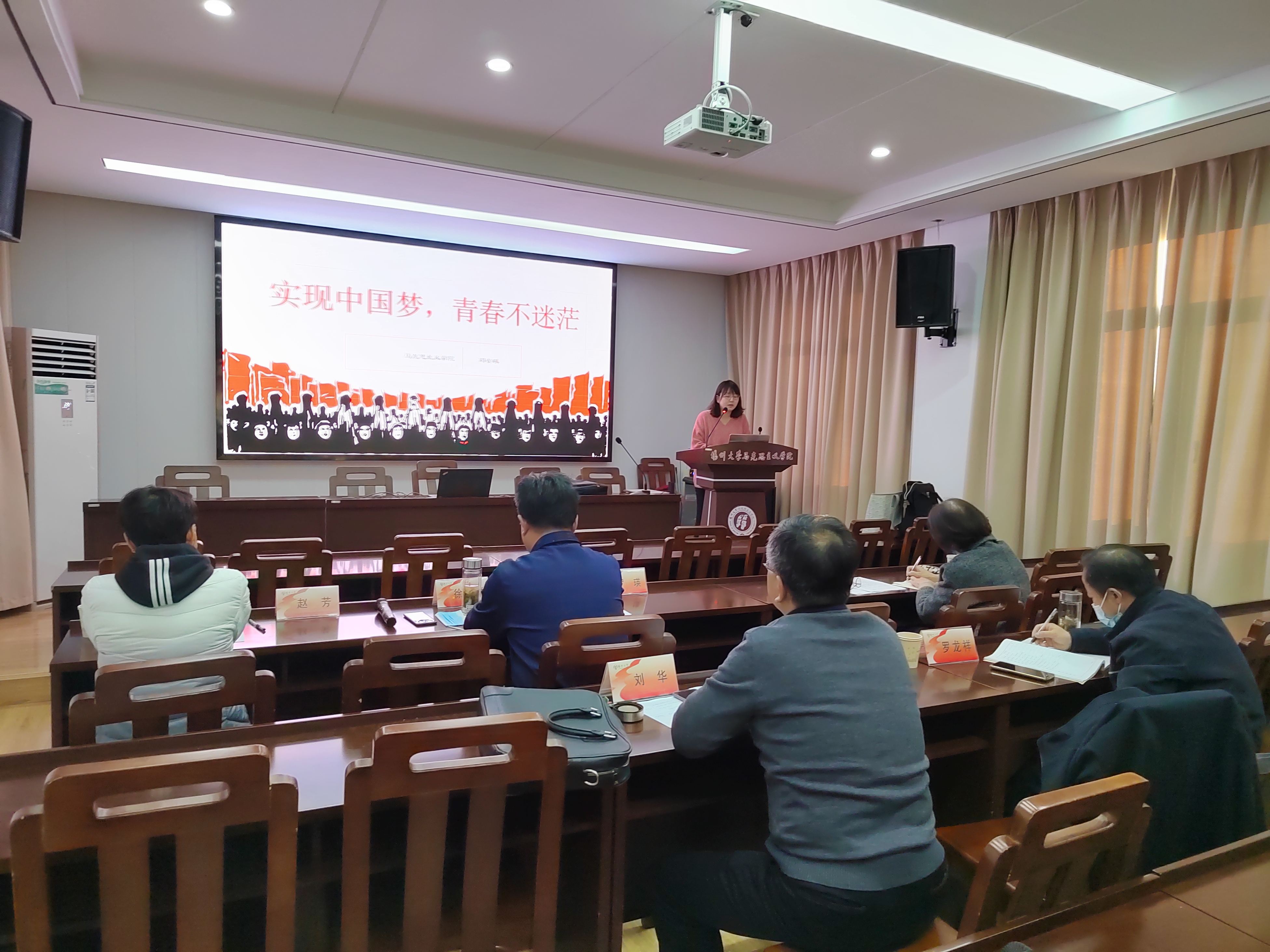 学院2020年新入职的三位教师进行了精彩的课程汇报。首先汇报的是《毛泽东思想和中国特色社会主义理论体系概论》教研部的陈诚老师,陈老师讲课内容主要介绍的是“三个代表”重要思想的形成条件,即①对冷战结束后国际局势科学判断(世情)。②科学判断党的历史方位和总结历史经验(党情)。③建设中国特色社会主义伟大实践(国情)。陈诚老师讲课重点突出,内容全面深入、条理清楚、教学内容熟练、备课充分,获得了专家组的高度评价。随后,来自政教教研部的崔慧丽老师讲课内容主要围绕理想信念的内涵与特征进行讲授,首先,通过“朋友圈”导入,引出理想的内涵,通过一系列事例,讲述理想的多样性、超越性、实践性和时代性四个特征。其次,通过一些革命先辈的事例,讲述信念的内涵与特征。最后通过小小辩论会,使学生理解坚持理想信念不动摇的重要性。崔慧丽老师将课程思政元素充分挖掘,对学生三观的培养,起到润物细无声的作用。专家组对崔老师的教学内容和教学环节组织给予了极大的肯定。第三位汇报的老师也是来自《毛泽东思想和中国特色社会主义理论体系概论》教研部的邓安琪老师,邓老师认为中国梦和青春梦是有机联系的。不管是在革命战争年代,还是在社会主义建设时期,青年为民族复兴打下坚实基础。另外,实现中国梦的过程,也是成就青年个人事业的过程。所以,青年一定要以实际行动在中国梦的生动实践中书写精彩人生。邓老师教学环节设计完整,教学内容层次清晰,教态自然,赢得了专家组的一致好评。