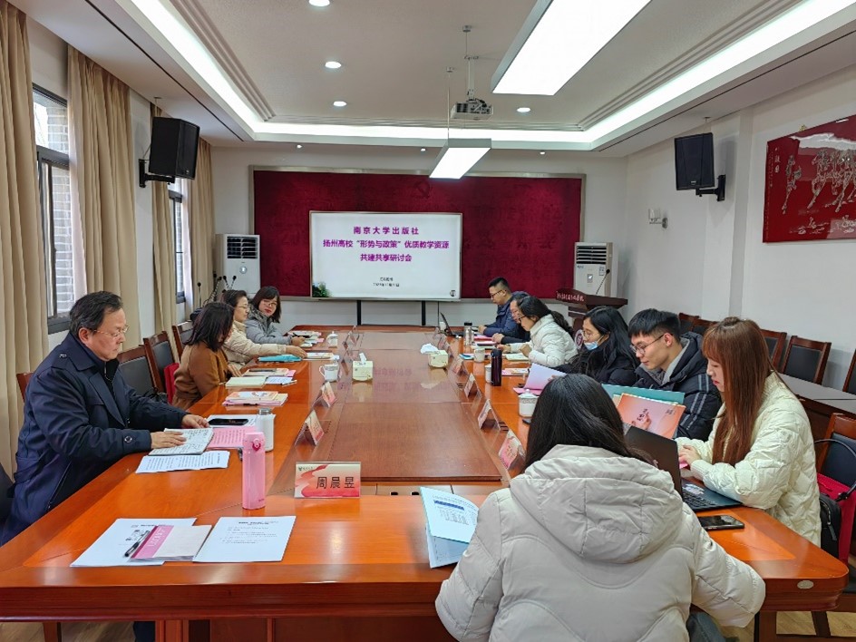 12月20日下午,由学院与南京大学出版社共同主办的扬州高校“形势与政策”教学资源平台共建共享研讨会顺利召开。南京大学出版社第四编辑部副主任唐顺霞主持会议。