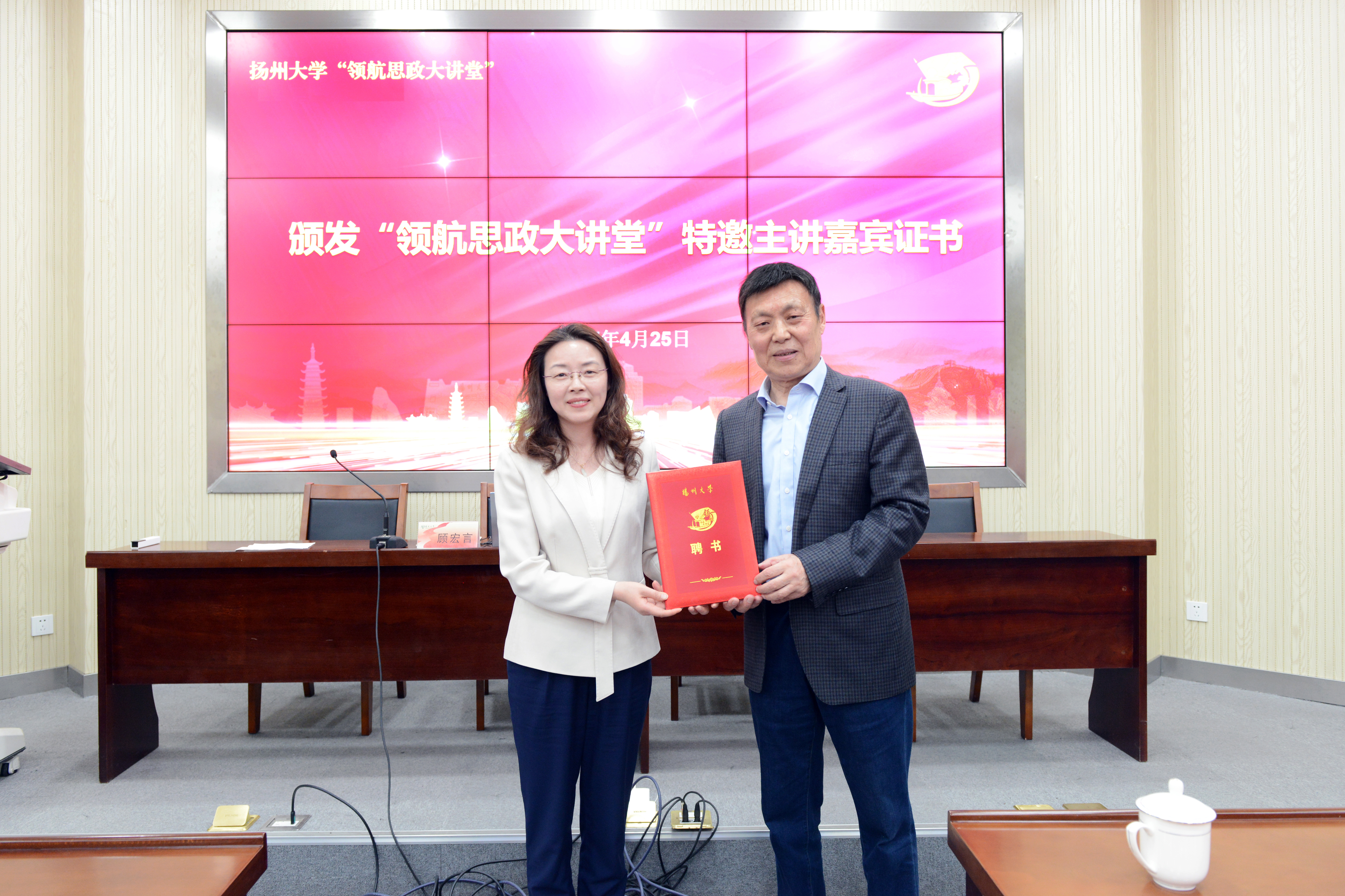 马克思主义学院副院长唐慧玲出席了本次“领航思政大讲堂”活动,并为顾宏言颁发了扬州大学思想政治理论课“领航思政大讲堂”特邀主讲嘉宾聘书。