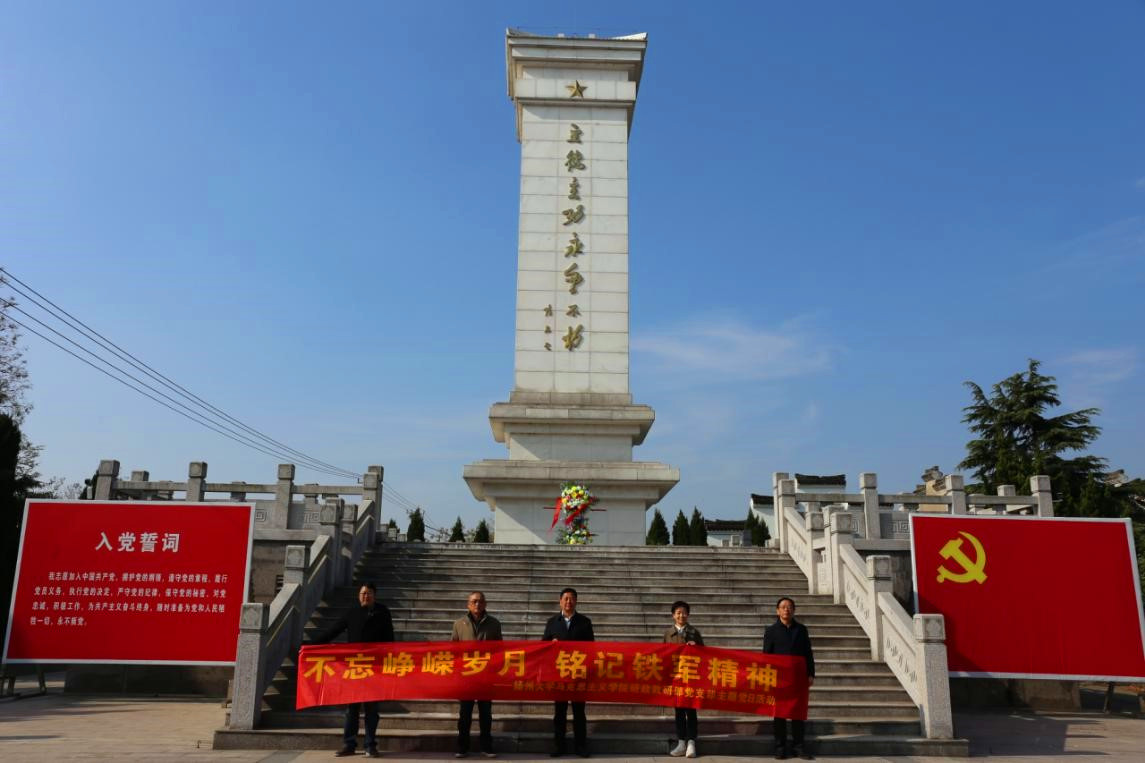 参观结束后,全体党员在学院党委刘继平书记的带领下,在革命烈士纪念塔前举行了向革命烈士致敬默哀、敬献花篮,以及重温入党誓词等仪式,做出了弘扬铁军精神,争做新时代优秀高校思想政治理论课教师的庄严承诺。