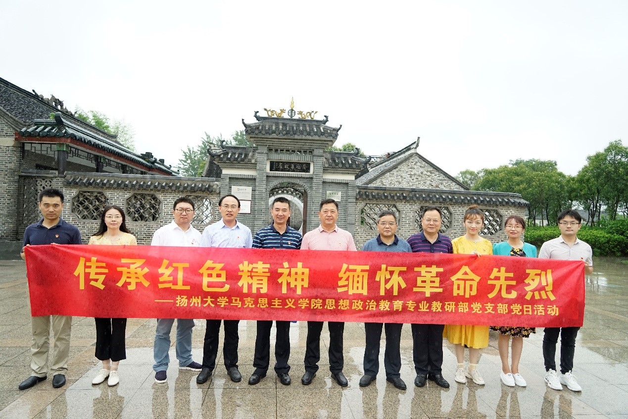 党支部赴建湖红色基地华中鲁艺烈士陵园和著名外交家乔冠华故居参观学习。华中鲁艺烈士陵园是为纪念在建湖县庆丰镇北秦庄抗日殉难的鲁迅艺术学院华中分院二队的烈士而建的一座陵园。华中鲁艺烈士纪念馆内布展了烈士生平事迹和实物、照片、图画等。党员教师们认真倾听讲解员的讲解,仔细观看馆陈,全面了解了鲁迅艺术学院华中分院师生和新安旅行团与日伪军展开殊死搏斗,最后壮烈牺牲的英雄事迹。